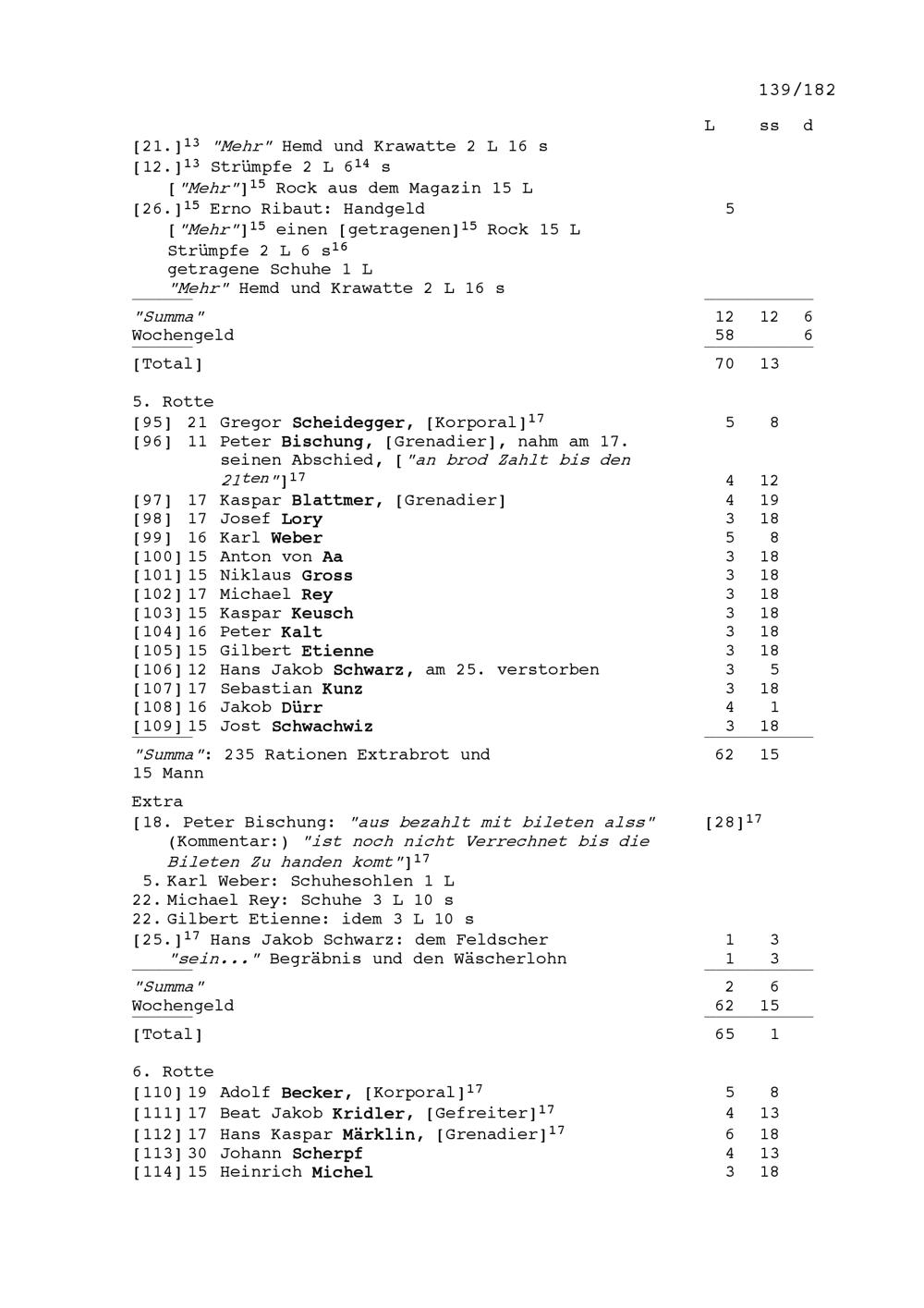 Mannschafts- und Soldrodel der Kompanie von Beat Jakob II. Zurlauben, Hauptmann im...