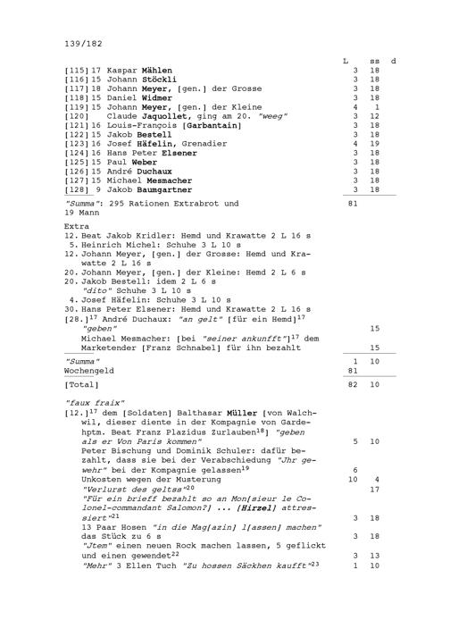 Mannschafts- und Soldrodel der Kompanie von Beat Jakob II. Zurlauben, Hauptmann im...