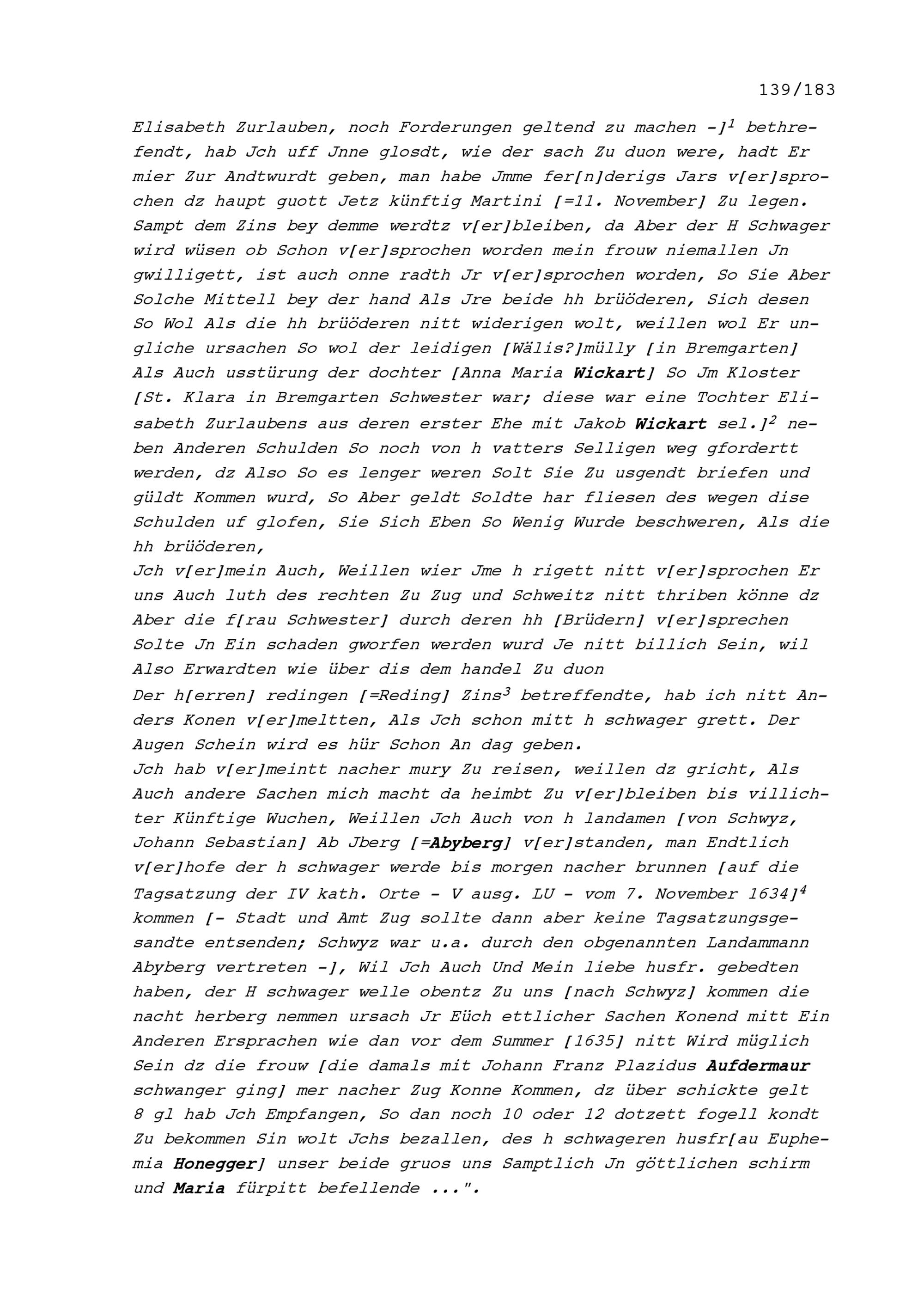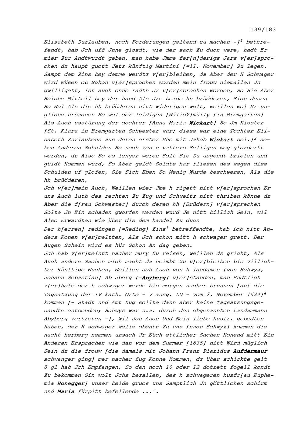 Schreiben von Balthasar Aufdermaur an Beat II. Zurlauben, Ammann und Stadt- und Amtrat,...