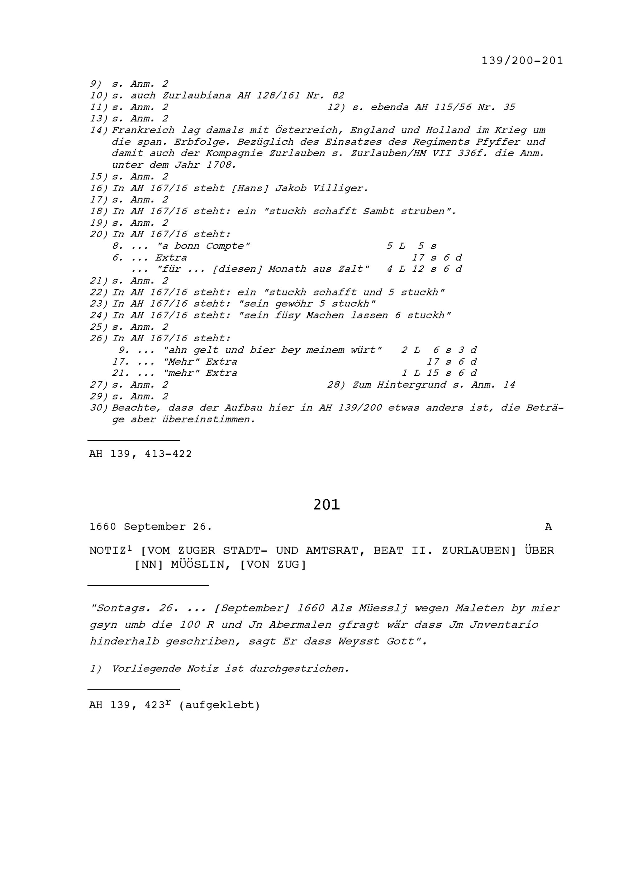 Notiz von Beat II. Zurlauben, Stadt- und Amtrat Zug über NN Müöslin, von Zug