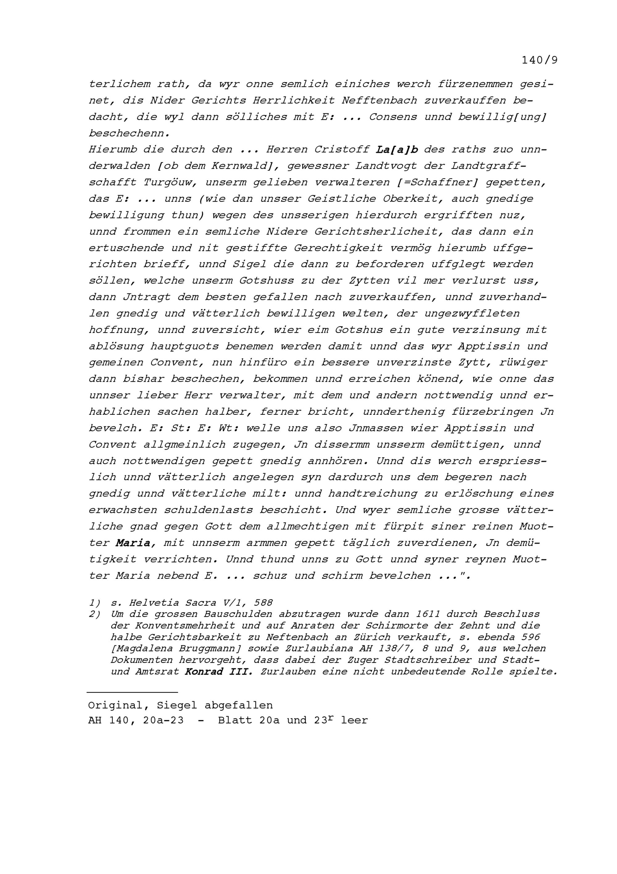 Schreiben der Äbtissin, Priorin und des Konvents des Klosters Paradies an Ammann und Rat von Stadt und Amt Zug