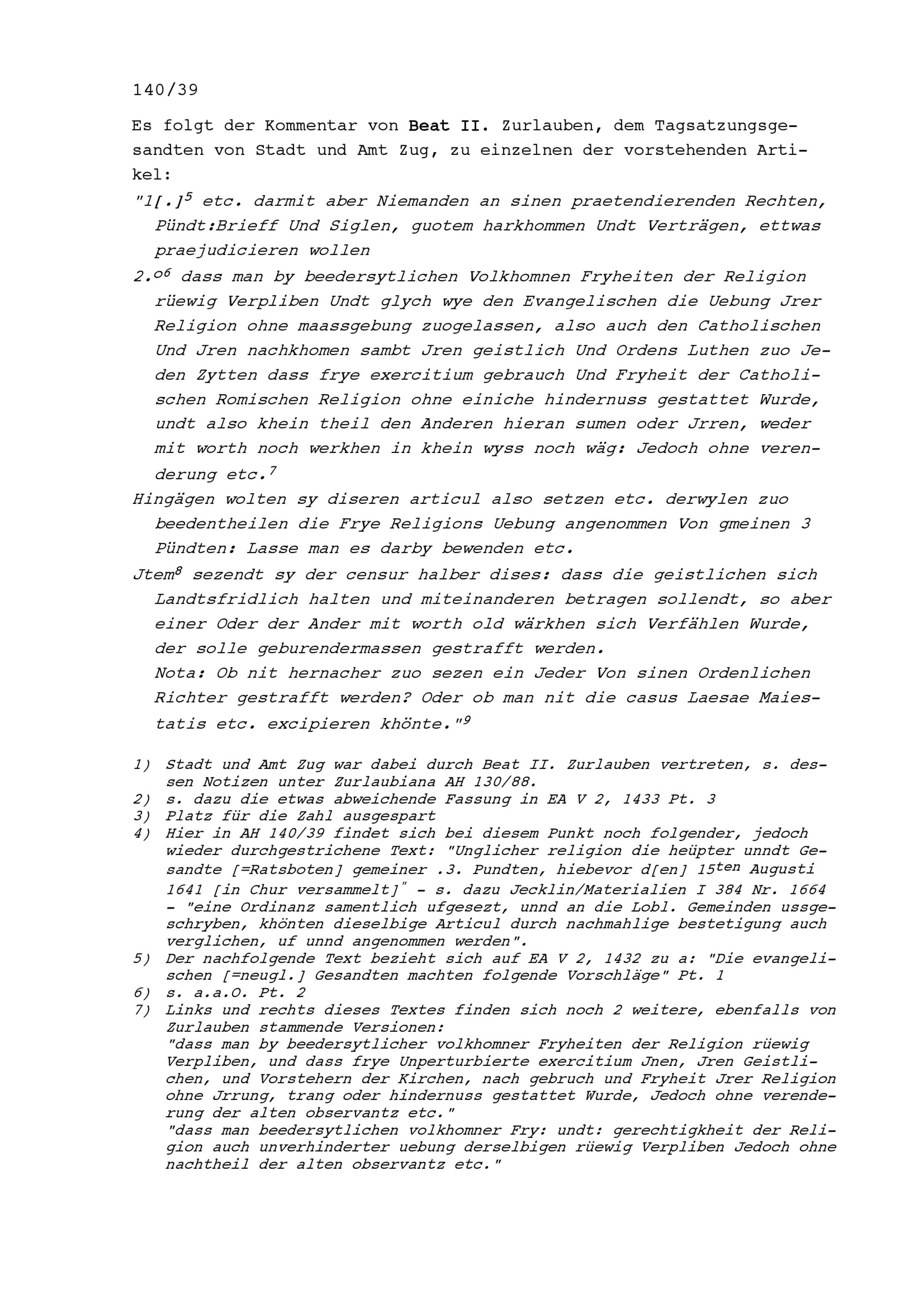 Abschied der wegen der Bündnerwirren nach Chur auf den Beitag vom 18. bis 27. Mai...