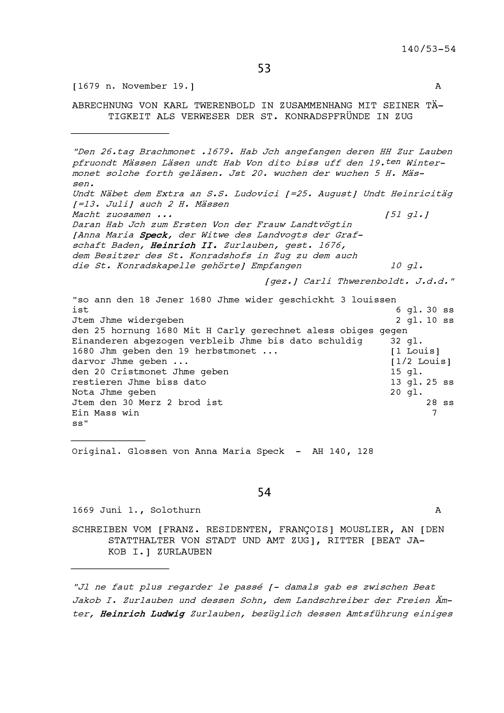 Abrechnung von Karl Twerenbold in Zusammenhang mit seiner Tätigkeit als Verweser der Sankt Konradspfrund in Zug