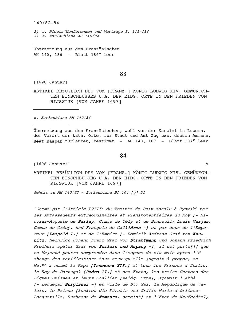 Artikel über den Einbezug der Gesandten der Eidgenössischen Orte in den Frieden von Rijswijk, wie es Ludwig XIV., König von Frankreich, wünschte