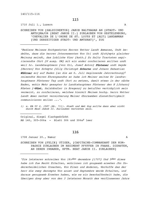 Schreiben von Jakob Balthasar, Salzdirektor, an Beat Jakob II. Zurlauben, Stadt- und Amtmajor, Zug