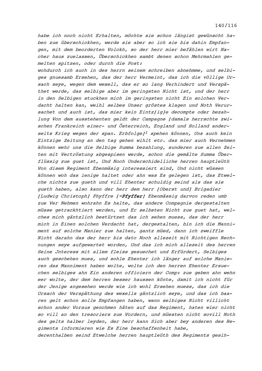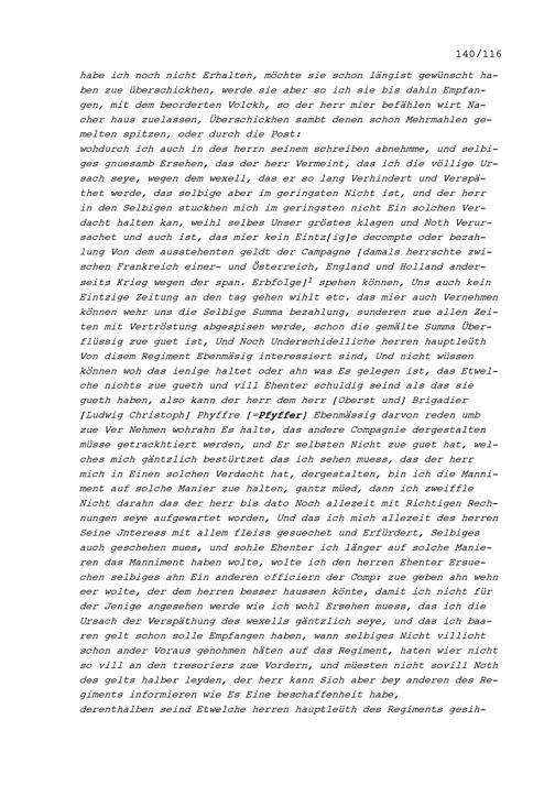 Schreiben von Felix Utiger, Kommandant der Kompanie Zurlauben im Regiment Pfyffer in französischen Diensten, an Beat Jakob II. Zurlauben, Kompanie Inhaber und Hauptmann