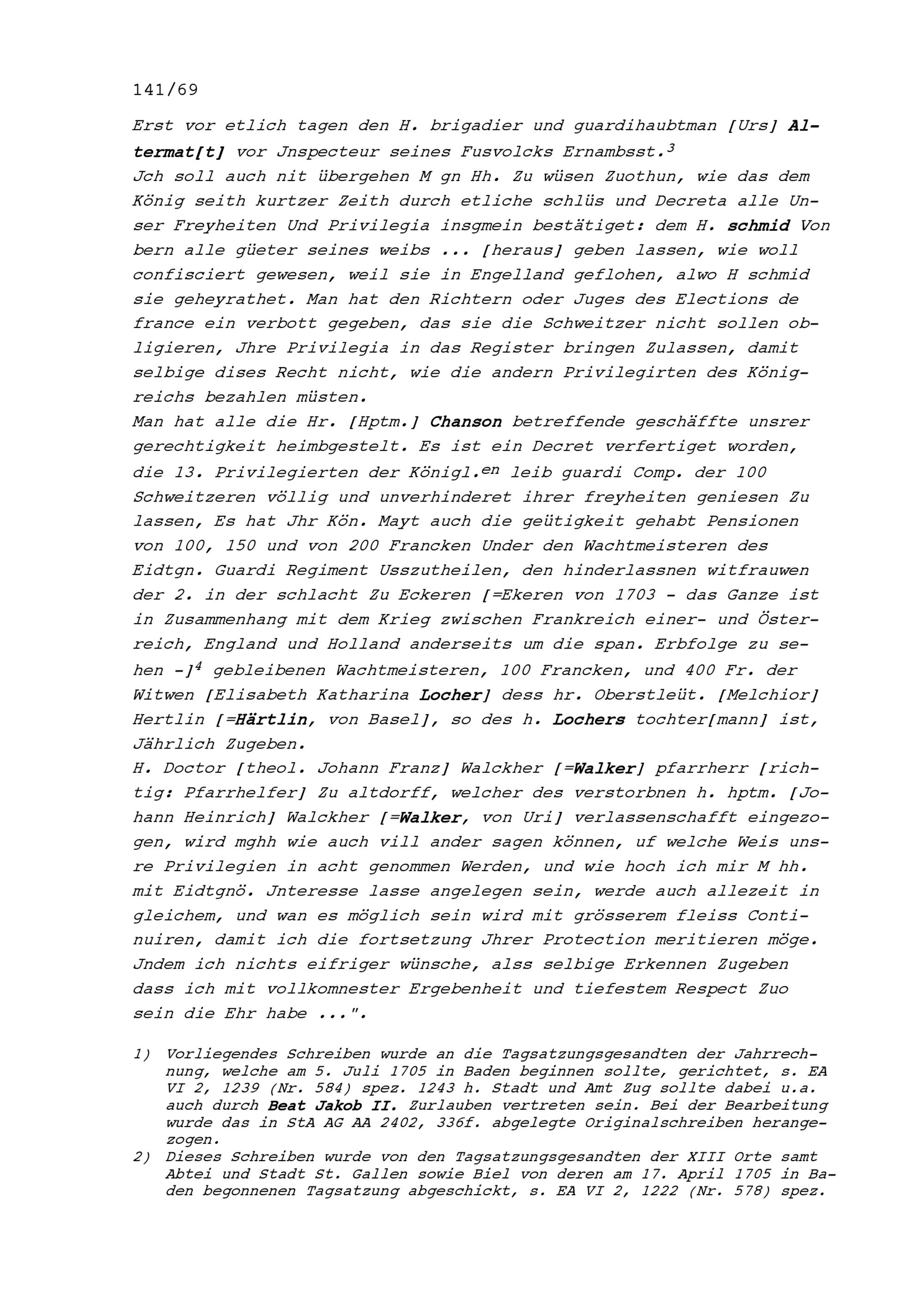 Schreiben von François de Reynold, Gardeoberst, an die Tagsatzungsgesandten der Eidgenössischen Orte