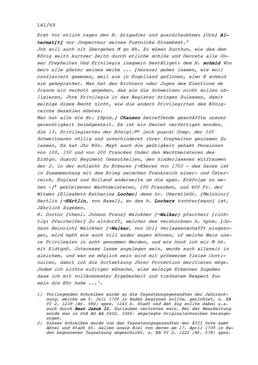 Schreiben von François de Reynold, Gardeoberst, an die Tagsatzungsgesandten der Eidgenössischen...