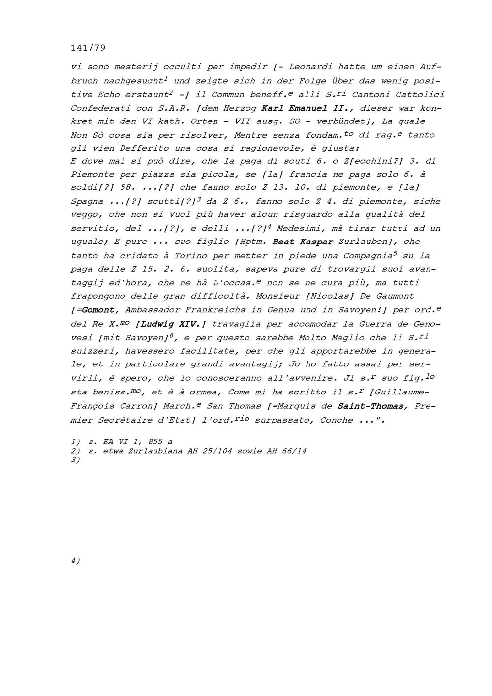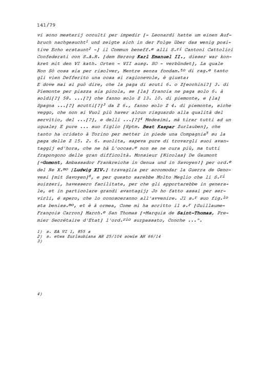 Schreiben von Giovanni Michele Leonardi, Ambassador von Savoyen, an Beat Jakob I. Zurlauben, Statthalter von Stadt und Amt Zug, Zug