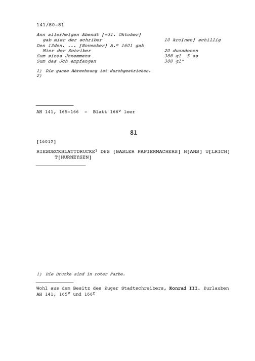 Druck: Riesdeckblattdrucke von Hans Ulrich Thurneysen, Basler Papiermacher