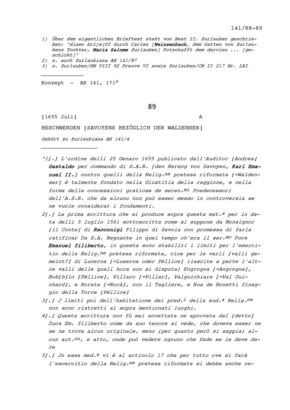 Beschwerden Savoyens bezüglich der Waldenser