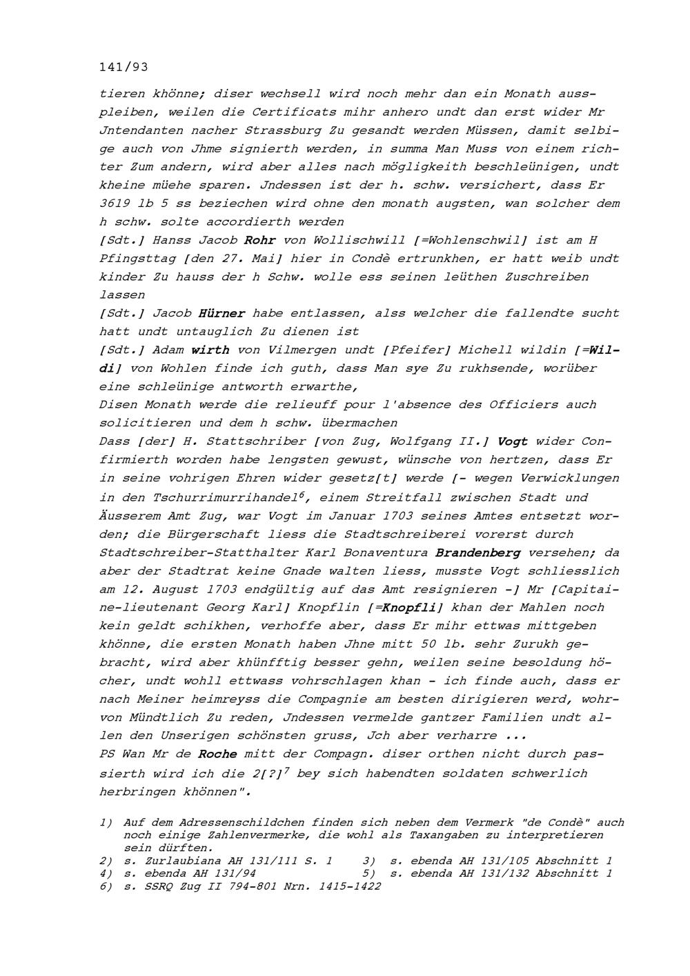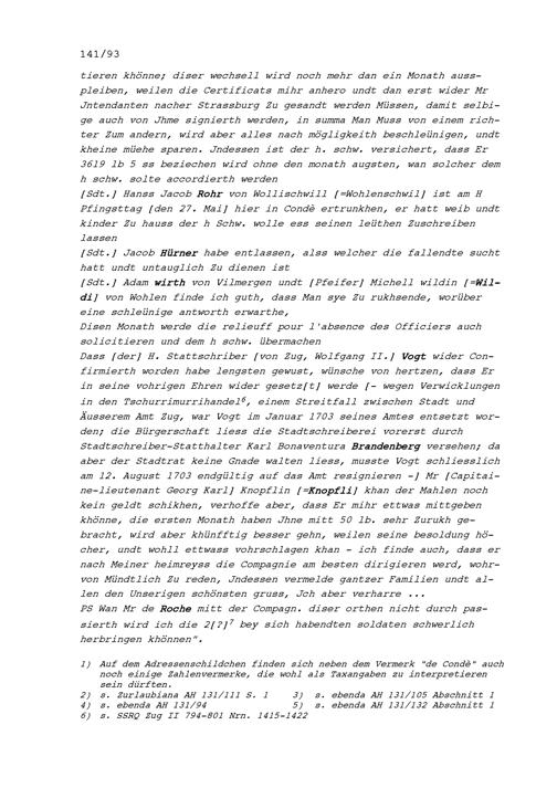Schreiben von Wolfgang Damian Müller, Kommandant der Kompanie Zurlauben im Regiment...