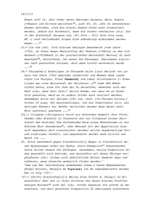 Instruktion von Stadt und Amt Zug auf die am 3. Juli 1707 in Baden beginnende Ja...