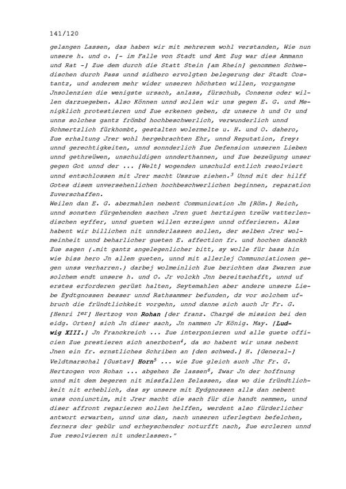 Schreiben der Tagsatzungsgesandten der Sieben Katholischen Orte in Baden an Johann Ernst von Scherfenberg, Feldmarschallleutnant und an Franz Peter König von Mohr, Oberst und Gubernator von Lindau