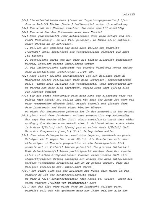 Notiz von Beat Jakob II. Zurlauben, Tagsatzungsgesandter von Stadt und Amt Zug, an der Tagsatzung der Fünf Katholischen Orte in Luzern vom 3. bis 5. September 1708