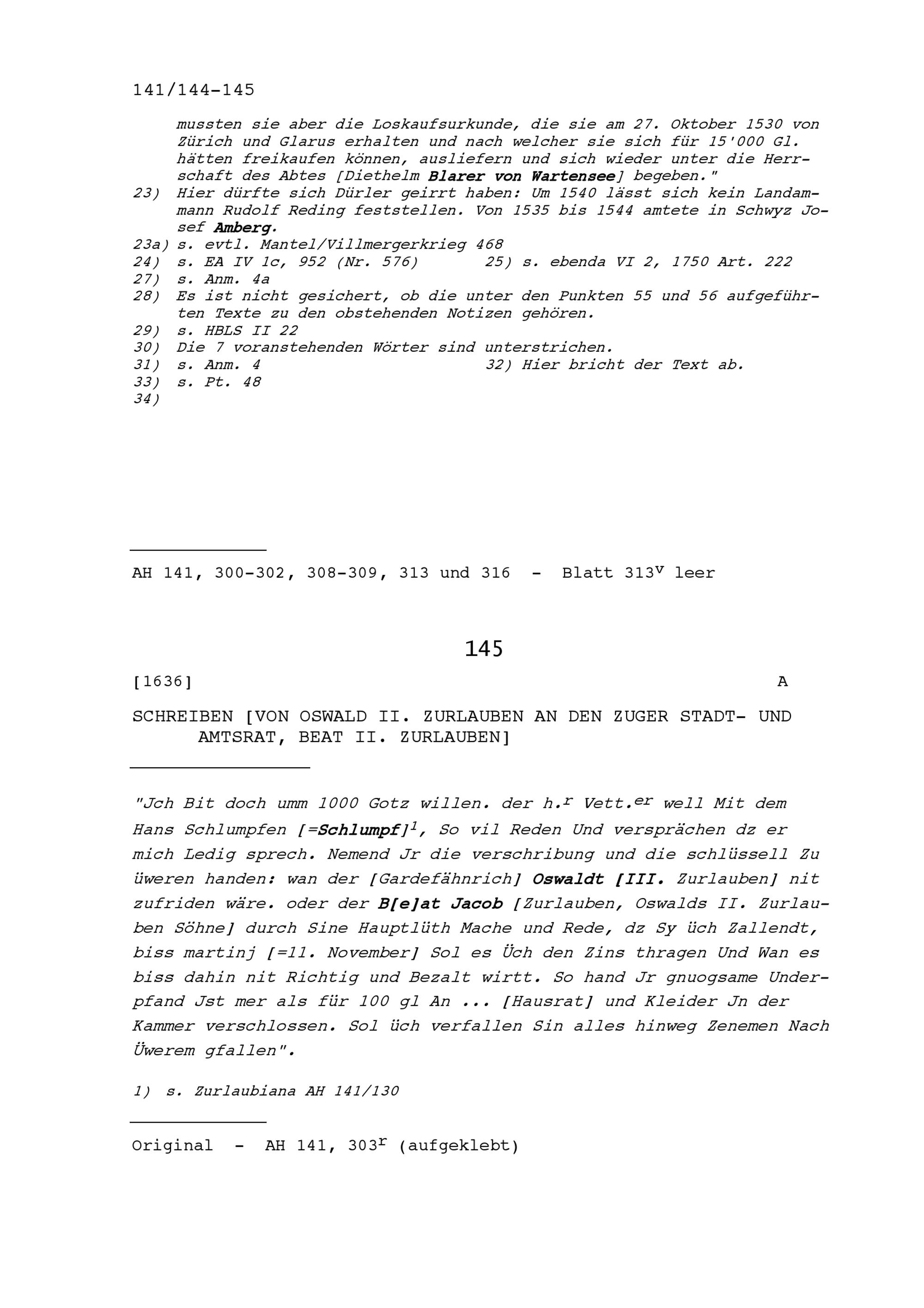 Schreiben von Oswald II. Zurlauben an Beat II. Zurlauben, Stadt- und Amtrat Zug