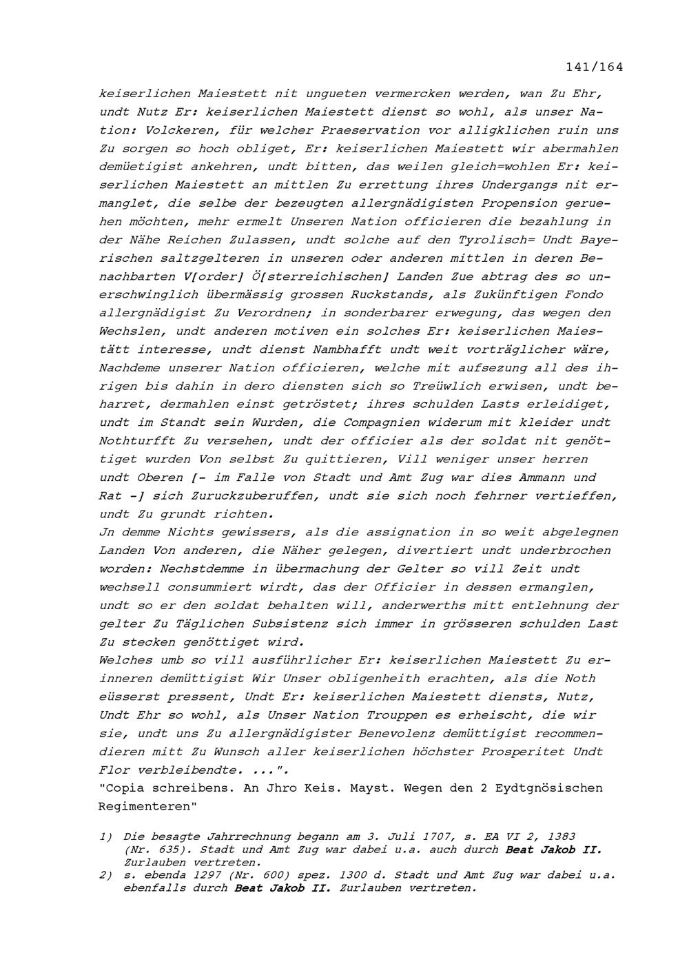 Schreiben der Tagsatzungsgesandten auf der Jahrrechnung in Baden der Dreizehn Orte samt Abtei und Stadt Sankt Gallen sowie Biel an Josef I., Kaiser