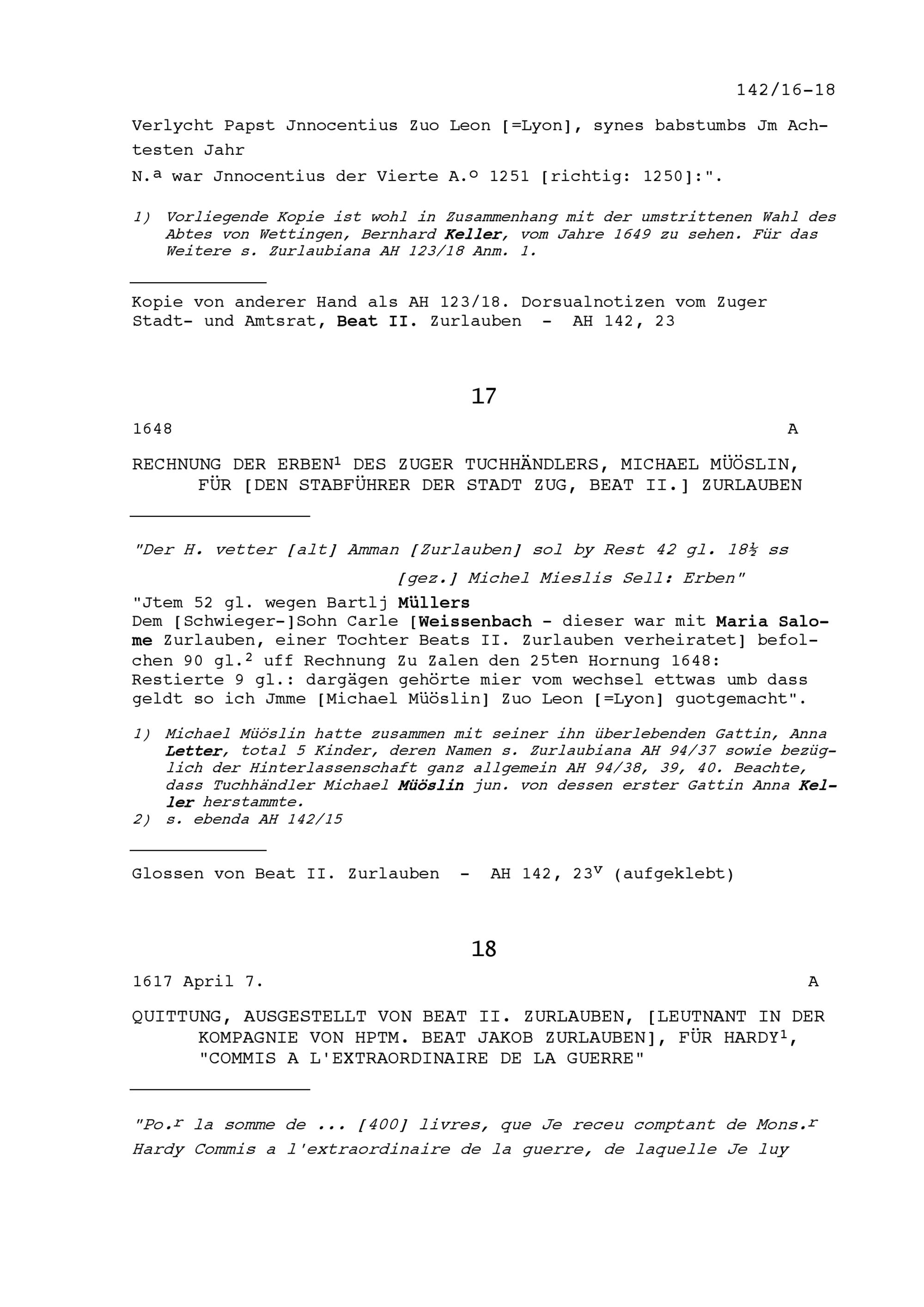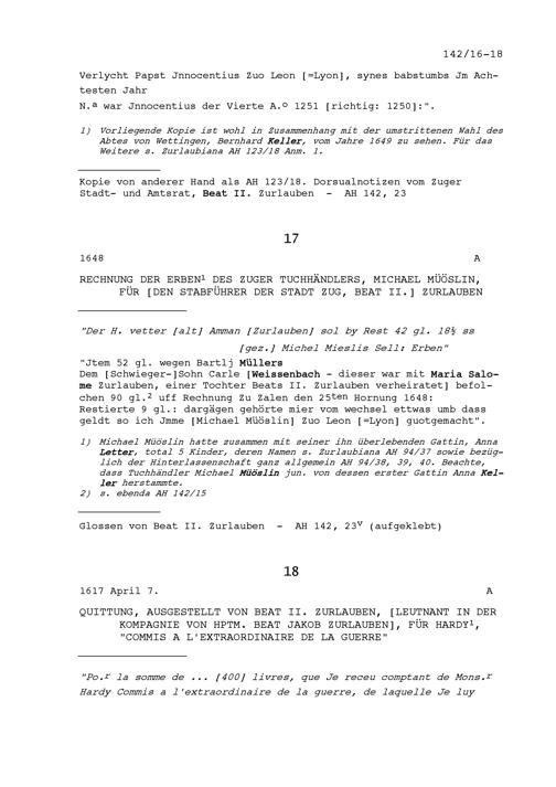 Rechnung der Erben von Michael Müöslin, Zuger Tuchhändler, für Beat II. Zurlauben,...