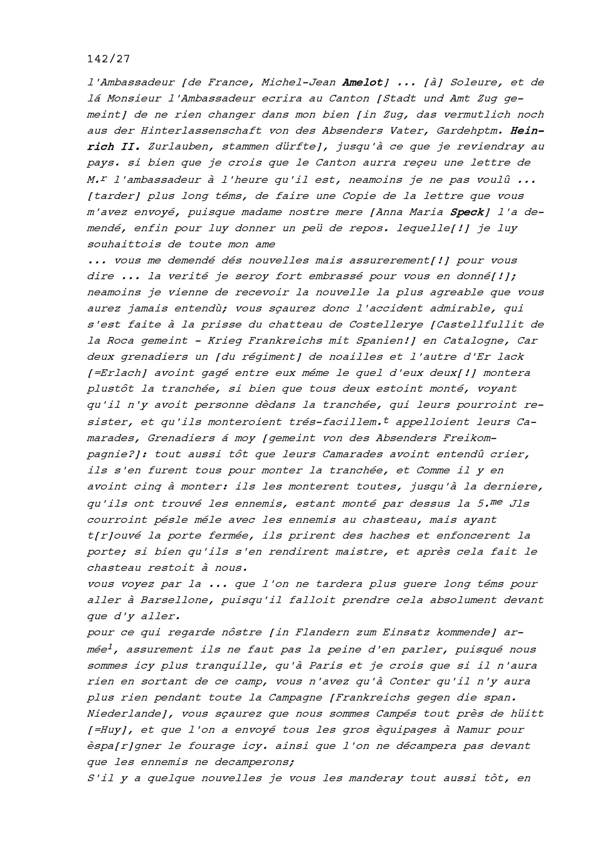 Schreiben von Beat Heinrich Josef Zurlauben, Gardehauptmann, an Beat Jakob II. Zurlauben, Hauptmann