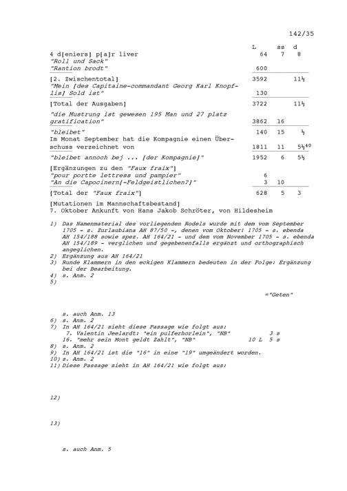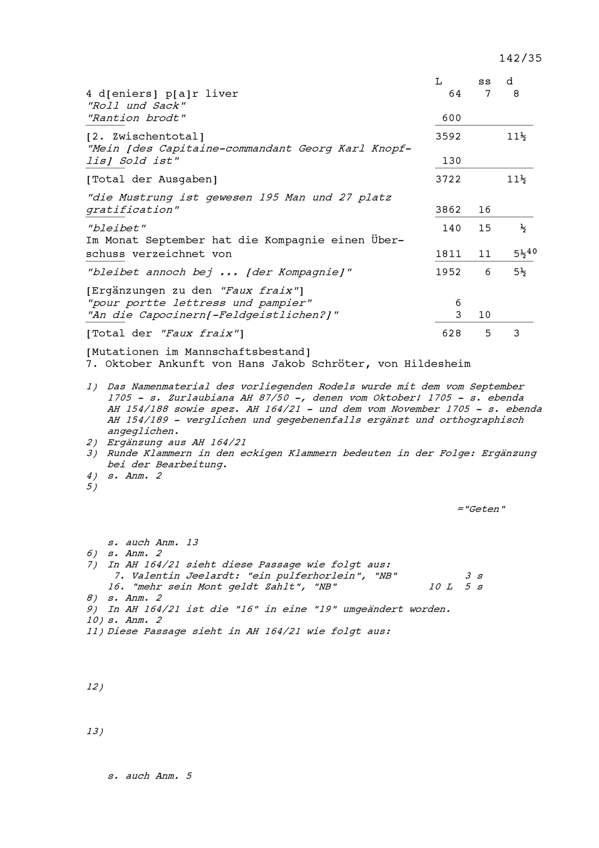 Mannschafts- und Soldrodel der Kompanie von Beat Jakob II. Zurlauben, Hauptmann im Regiment Pfyffer in französischen Diensten