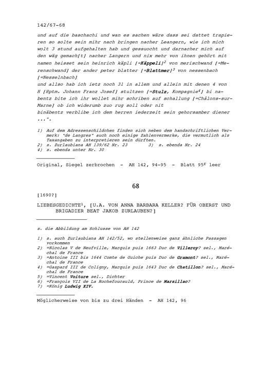 Liebesgedichte für Beat Jakob Zurlauben, Oberst und Brigadier, unter anderem von...
