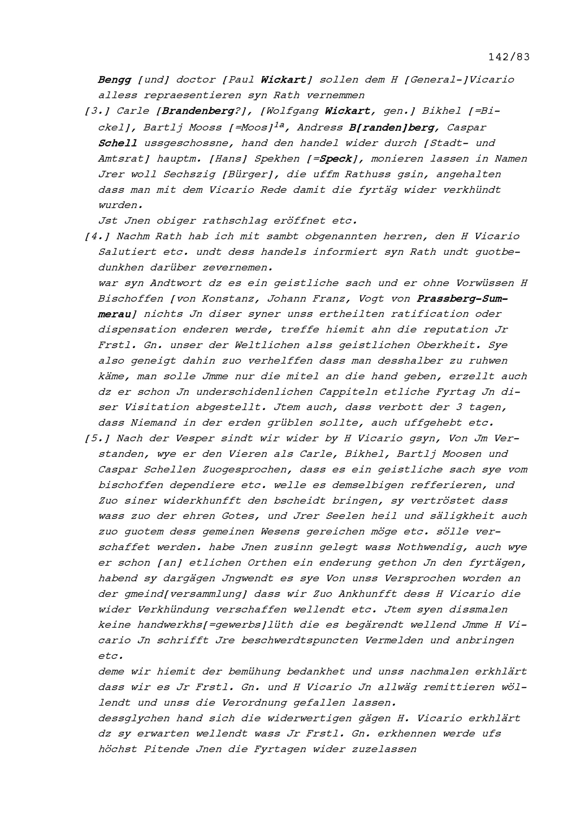 Notiz von Beat II. Zurlauben, Stabführer der Stadt Zug, über die Sitzung des Stadtrats...