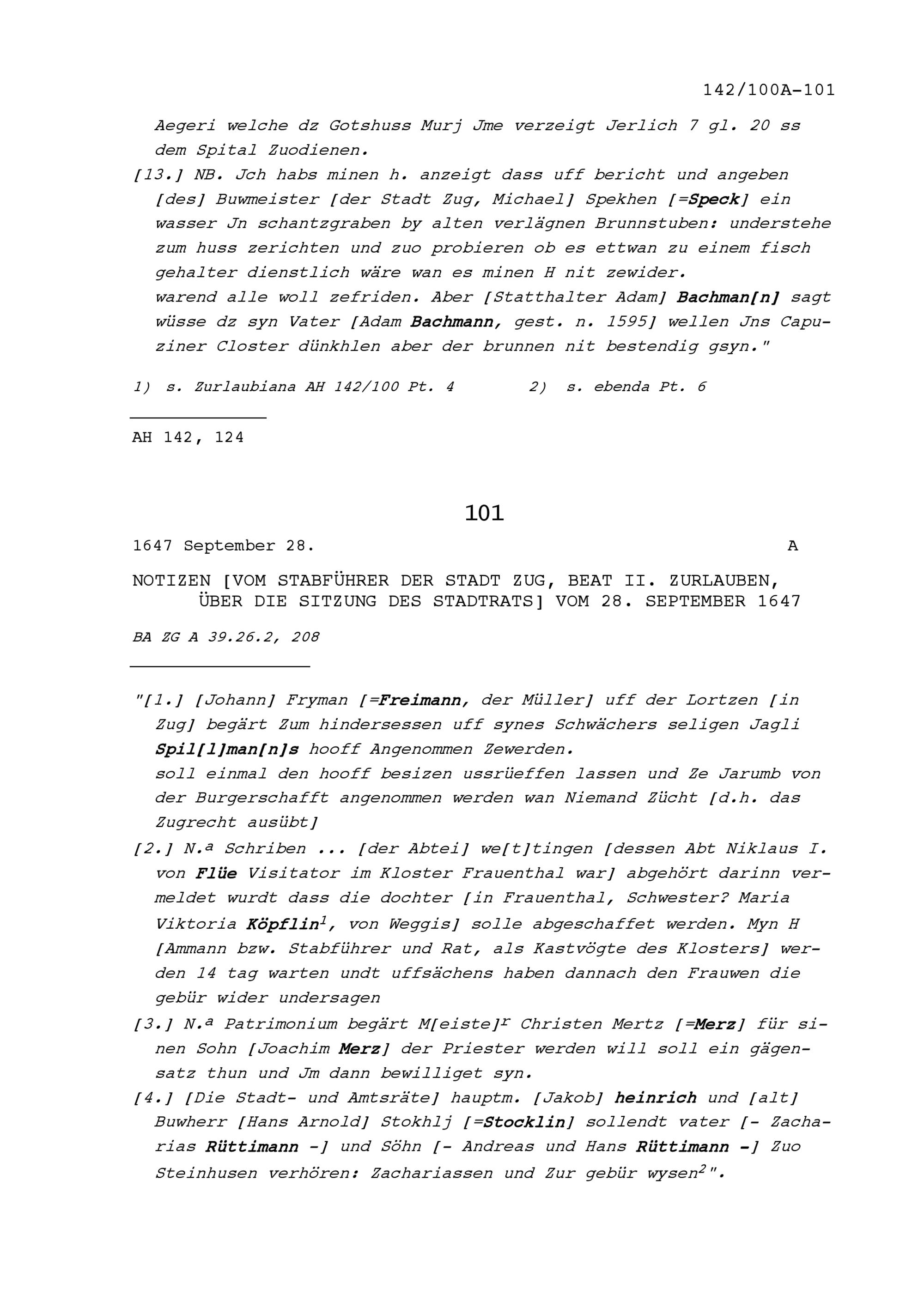 Notiz von Beat II. Zurlauben, Stabführer der Stadt Zug, über die Sitzung des Stadtrats vom 28. September 1647