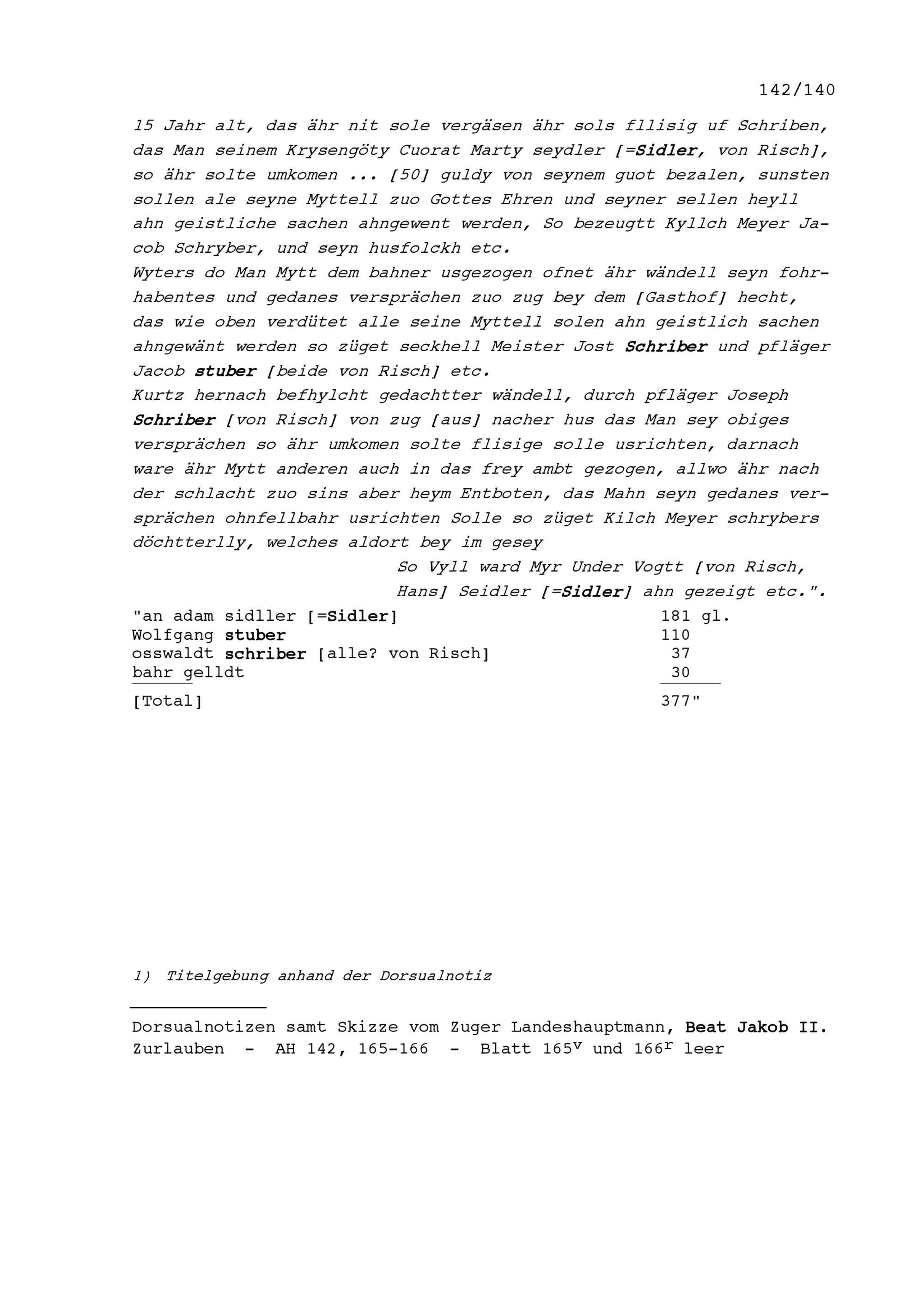 Testament von Wendelin Müller, Risch, niedergeschrieben vor dem Villmergerkrieg, aufgeschrieben von Hans Sidler, Untervogt