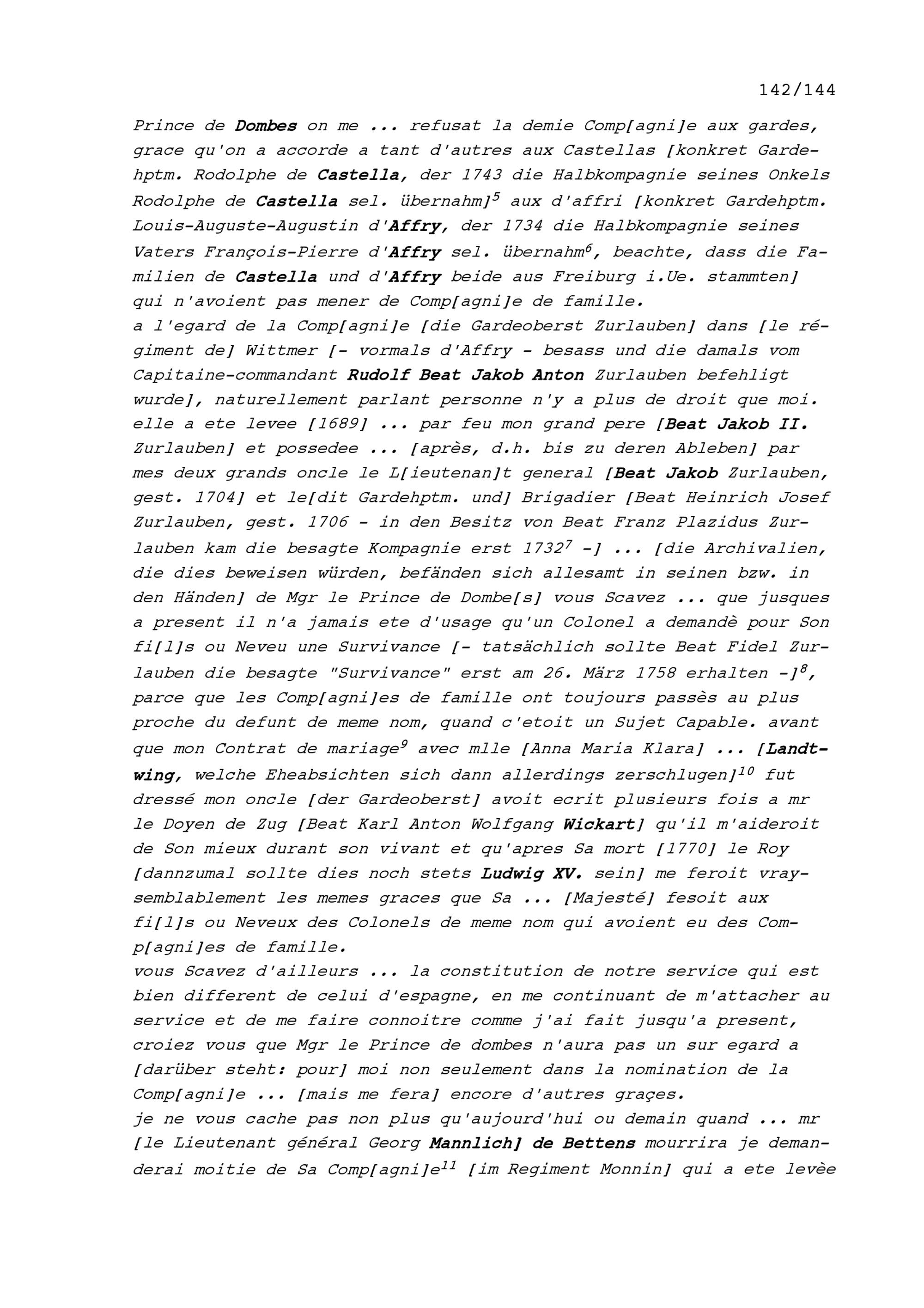 Schreiben von Beat Fidel Zurlauben, Gardehauptmann und Brigadier, an Johann Franz Anton Fidel Landtwing, Oberstleutnant