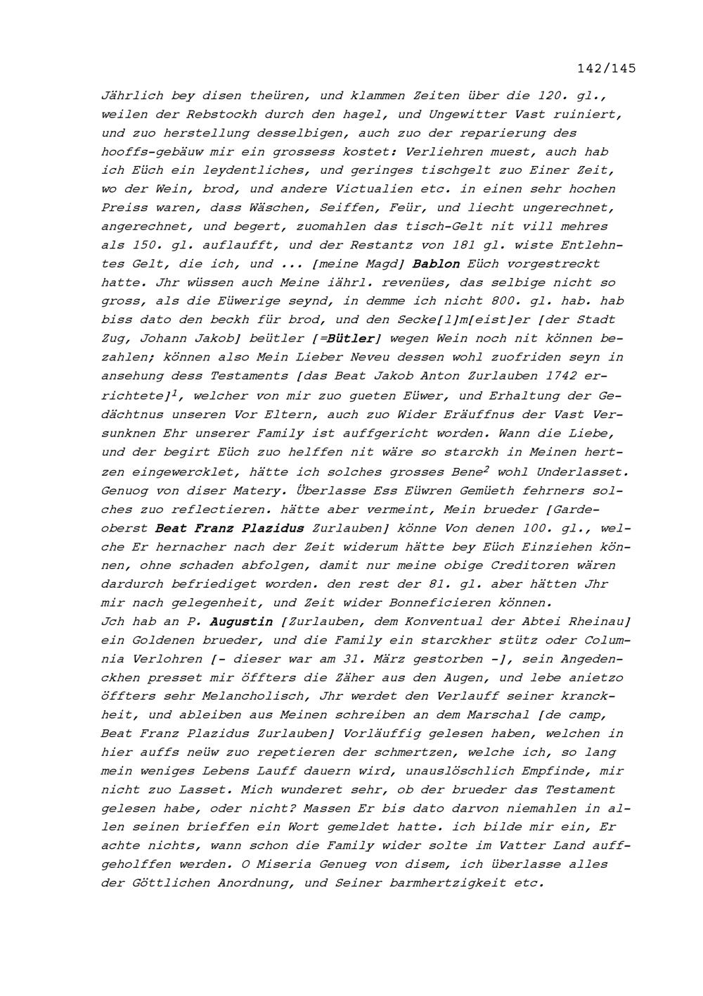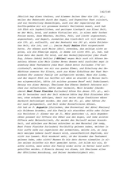 Schreiben von Beat Jakob Anton Zurlauben, Priester, an Beat Fidel Zurlauben, in Douai in Flandern