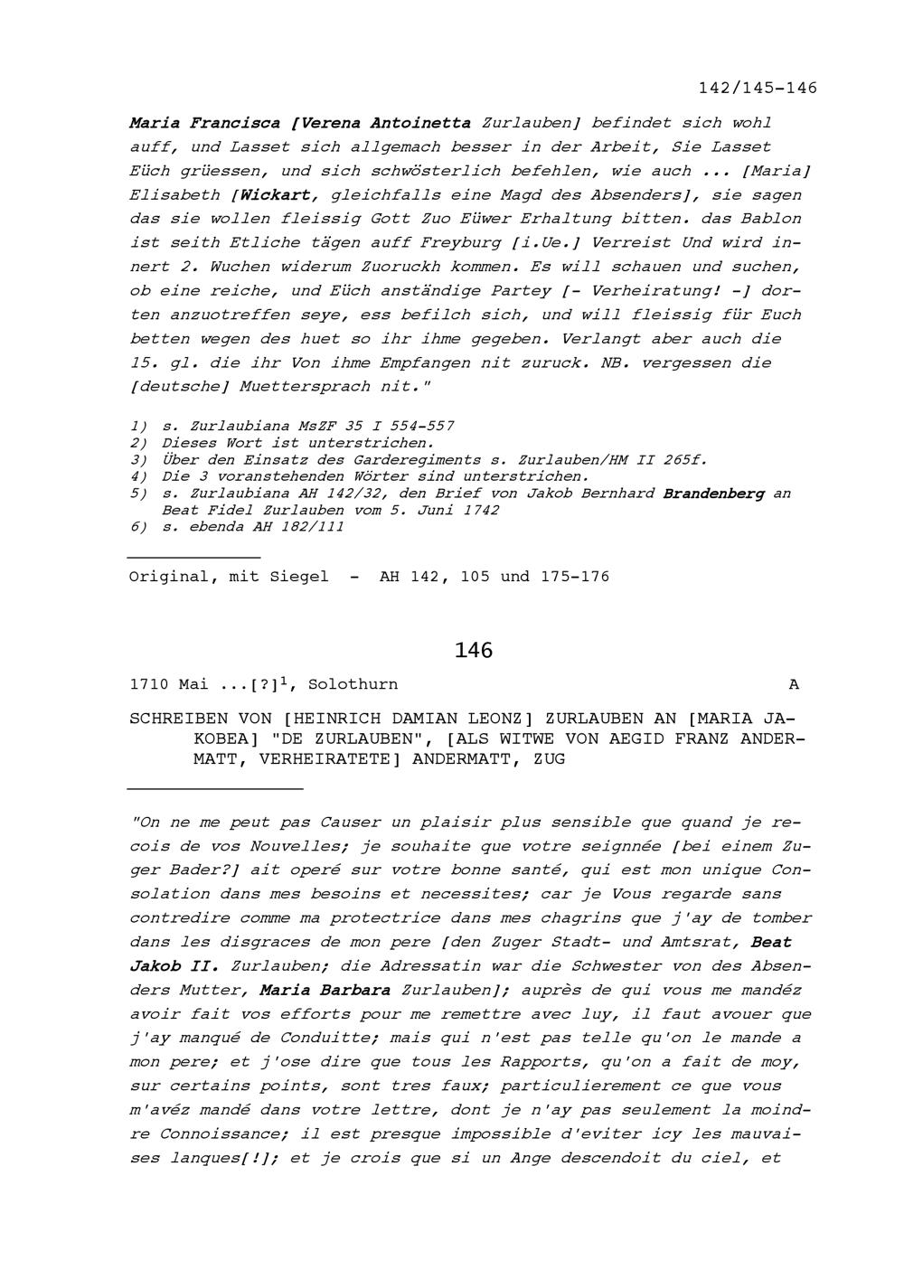 Schreiben von Heinrich Damian Leonz Zurlauben an Maria Jakobea Zurlauben, Witwe von Ägid Franz Andermatt, Zug
