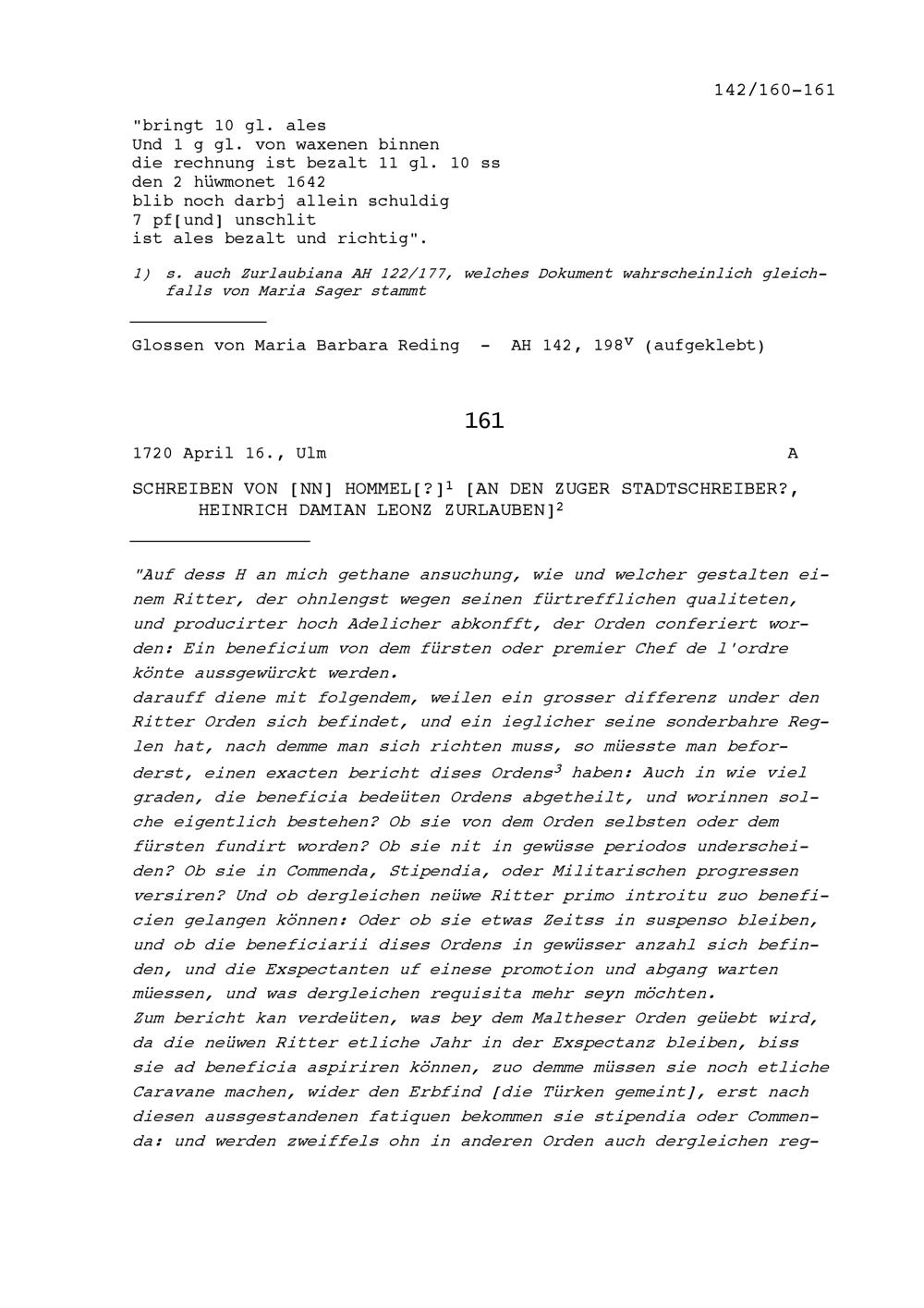 Schreiben von NN Hommel an Heinrich Damian Leonz Zurlauben, Zuger Stadtschreiber