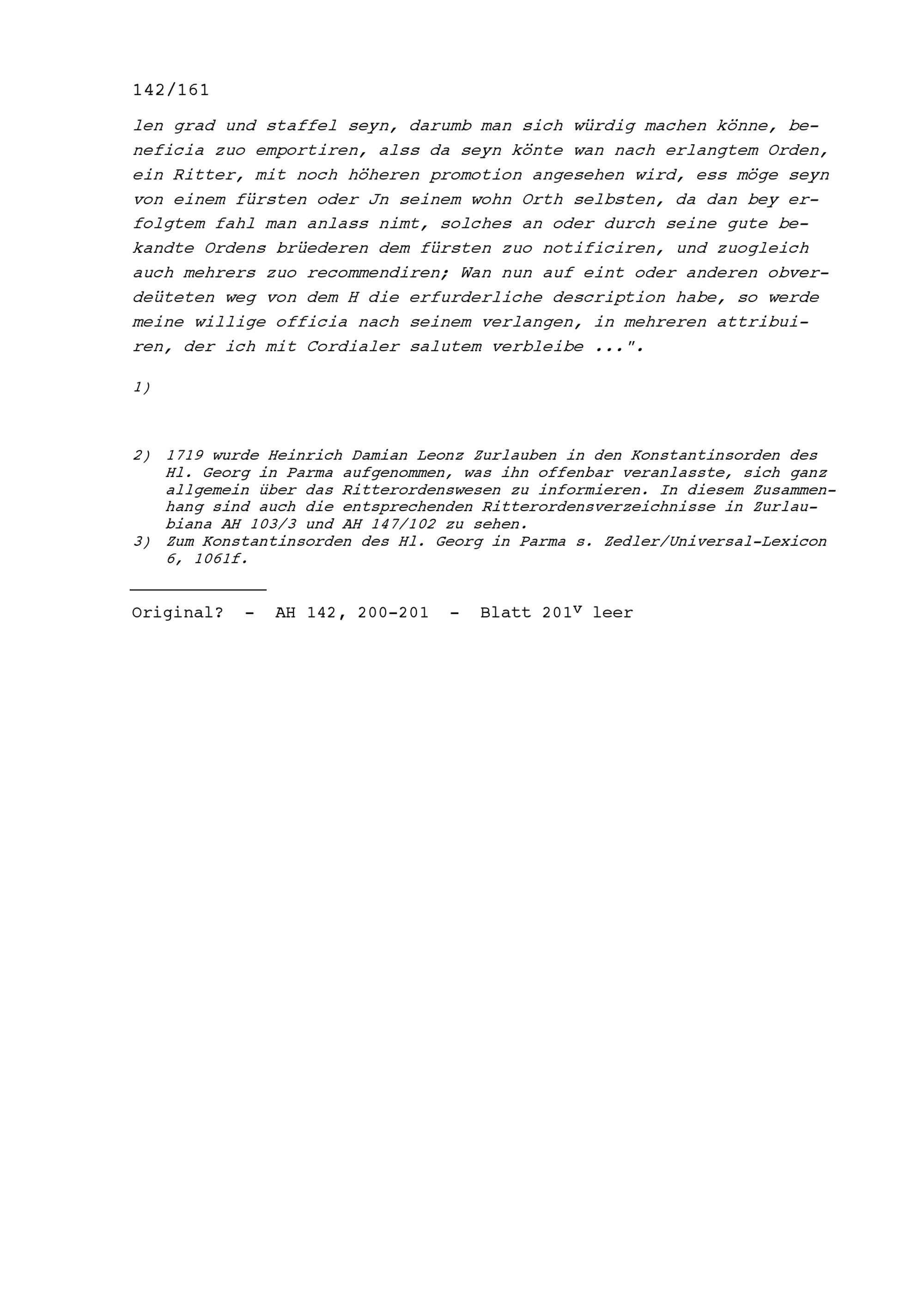 Schreiben von NN Hommel an Heinrich Damian Leonz Zurlauben, Zuger Stadtschreiber