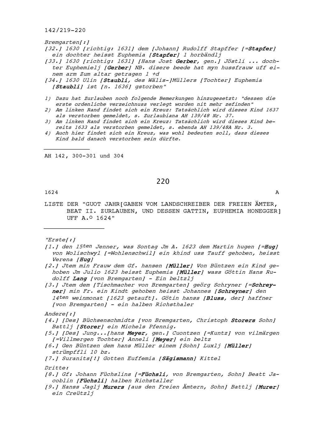 Gutjahrgaben von Beat II. Zurlauben, Landschreiber der Freien Ämter, und von Euphemia Honegger, dessen Gattin, 1624