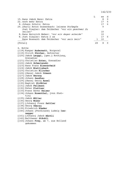 Mannschafts- und Soldrodel der Kompanie von Beat Jakob II. Zurlauben, Hauptmann im Regiment Pfyffer in französischen Diensten