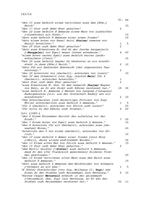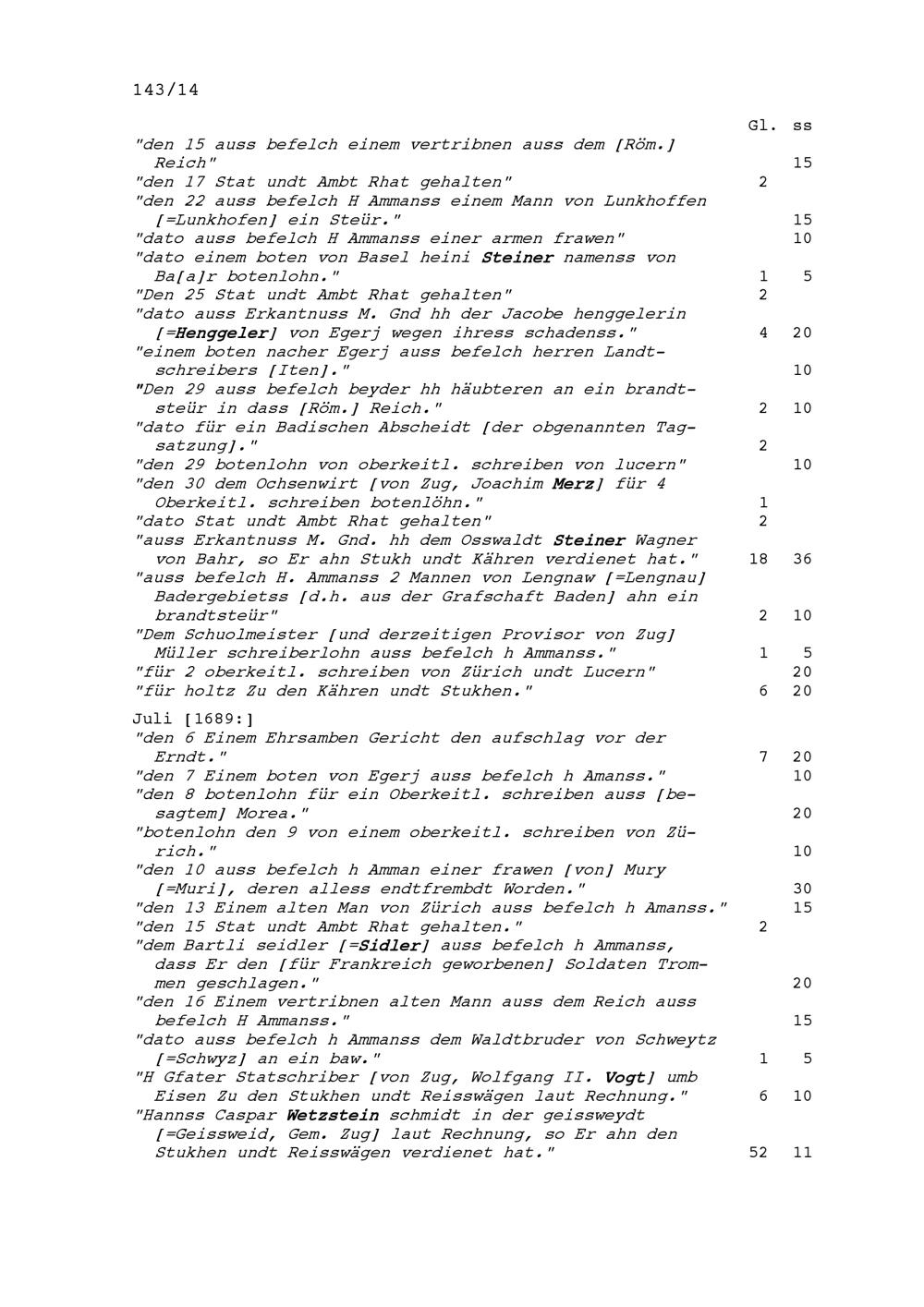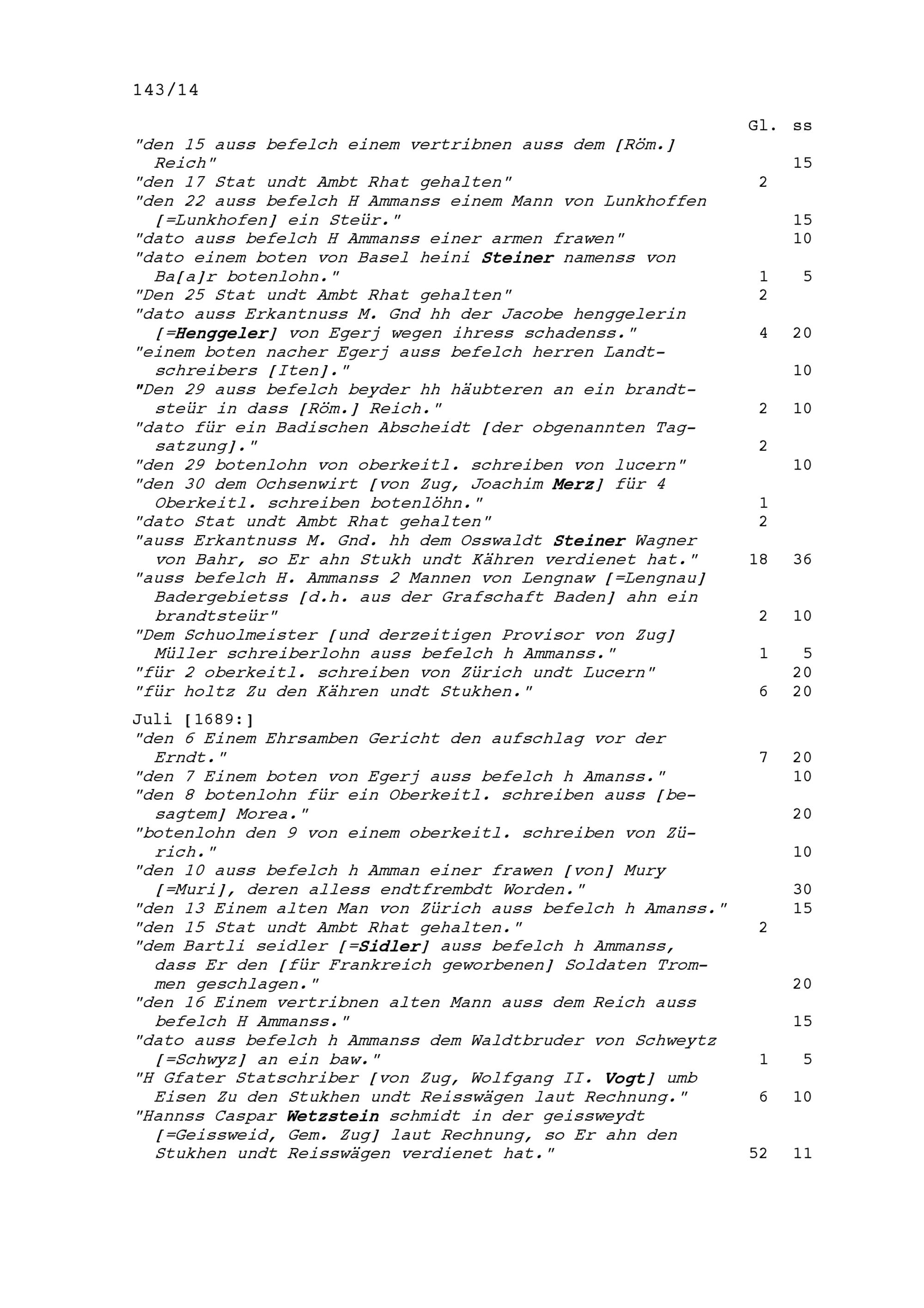 Rechnung der Einnahmen und Ausgaben von Johann Landtwing, Seckelmeister der Stadt Zug, für Ammann und Rat von Stadt und Amt Zug, angefangen am 8. Oktober 1688