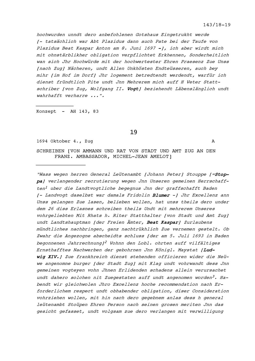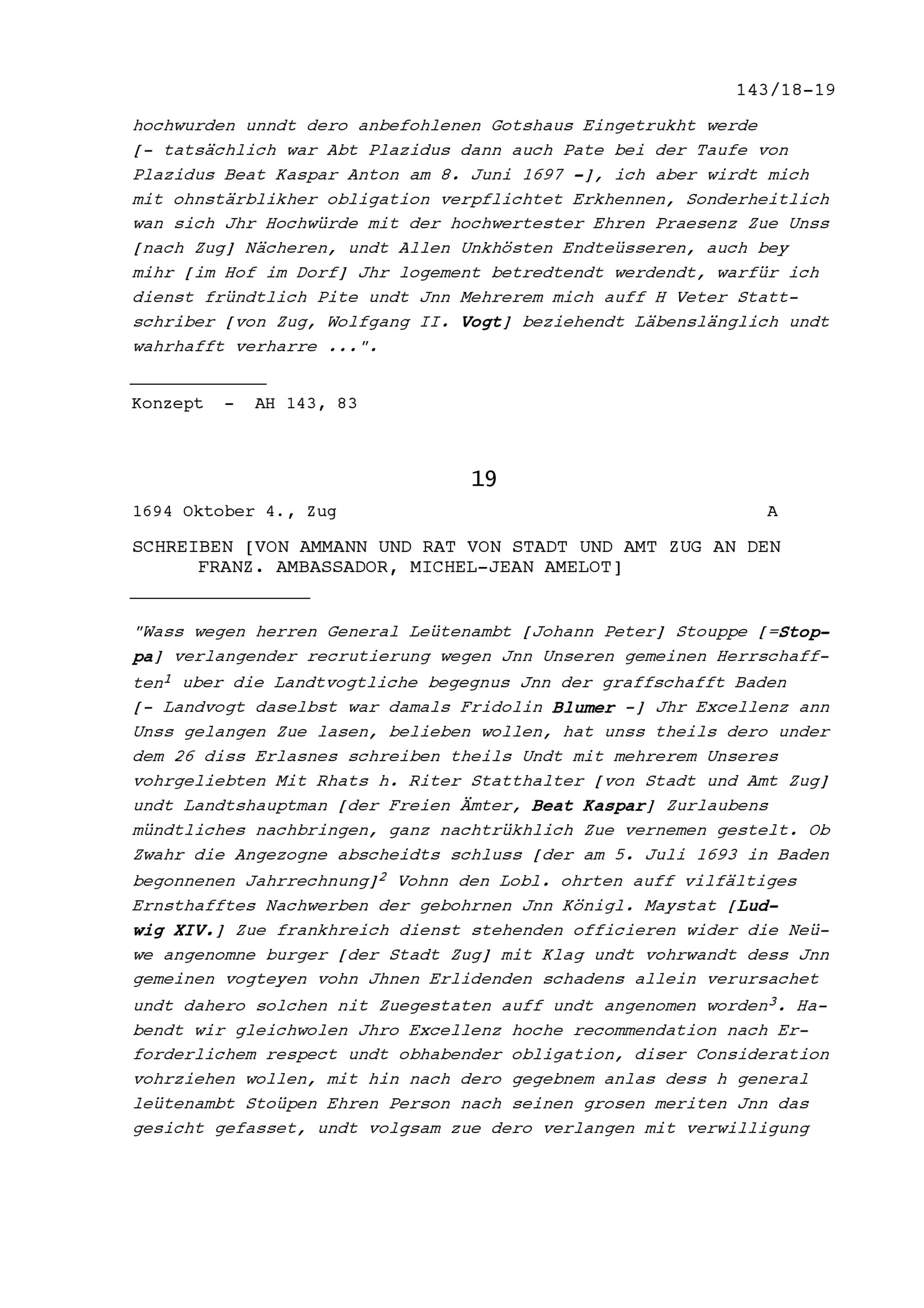 Schreiben des Ammanns und Rats von Stadt und Amt Zug an Michel-Jean Amelot, Ambassador von Frankreich