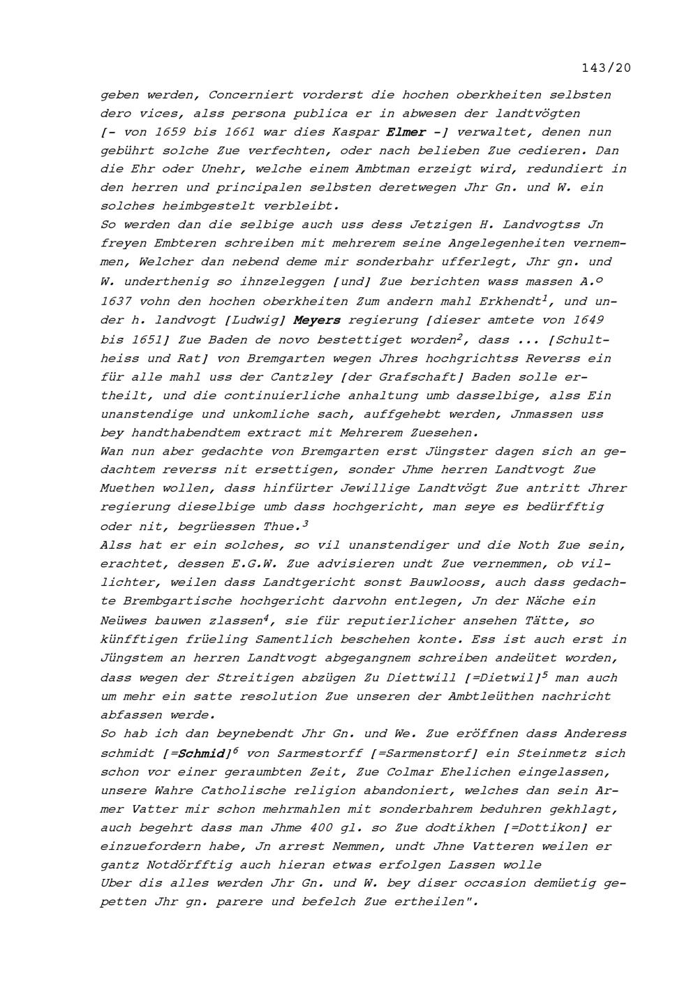 Schreiben von Beat Jakob I. Zurlauben, Landschreiber der Freien Ämter, an die Sieben in den Freien Ämter regierenden Orte