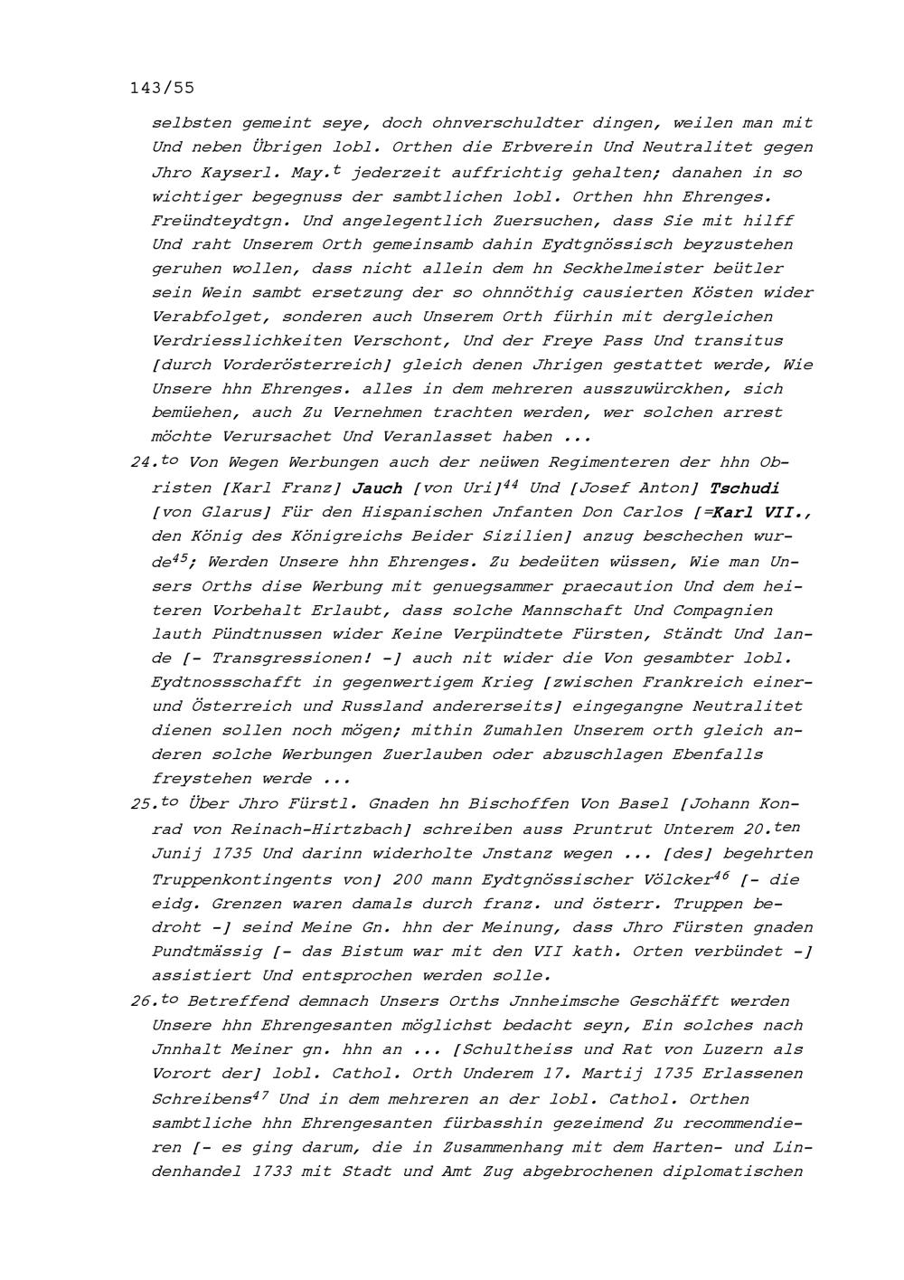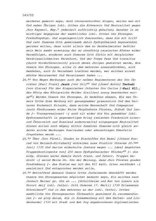 Instruktion des Ammanns und Rats von Stadt und Amt Zug auf die Jahrrechnung in Frauenfeld vom 4. bis 21. Juli 1735