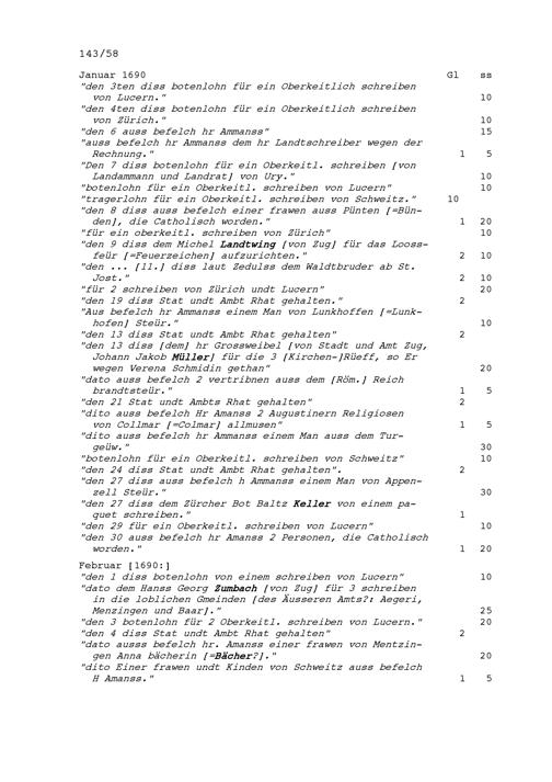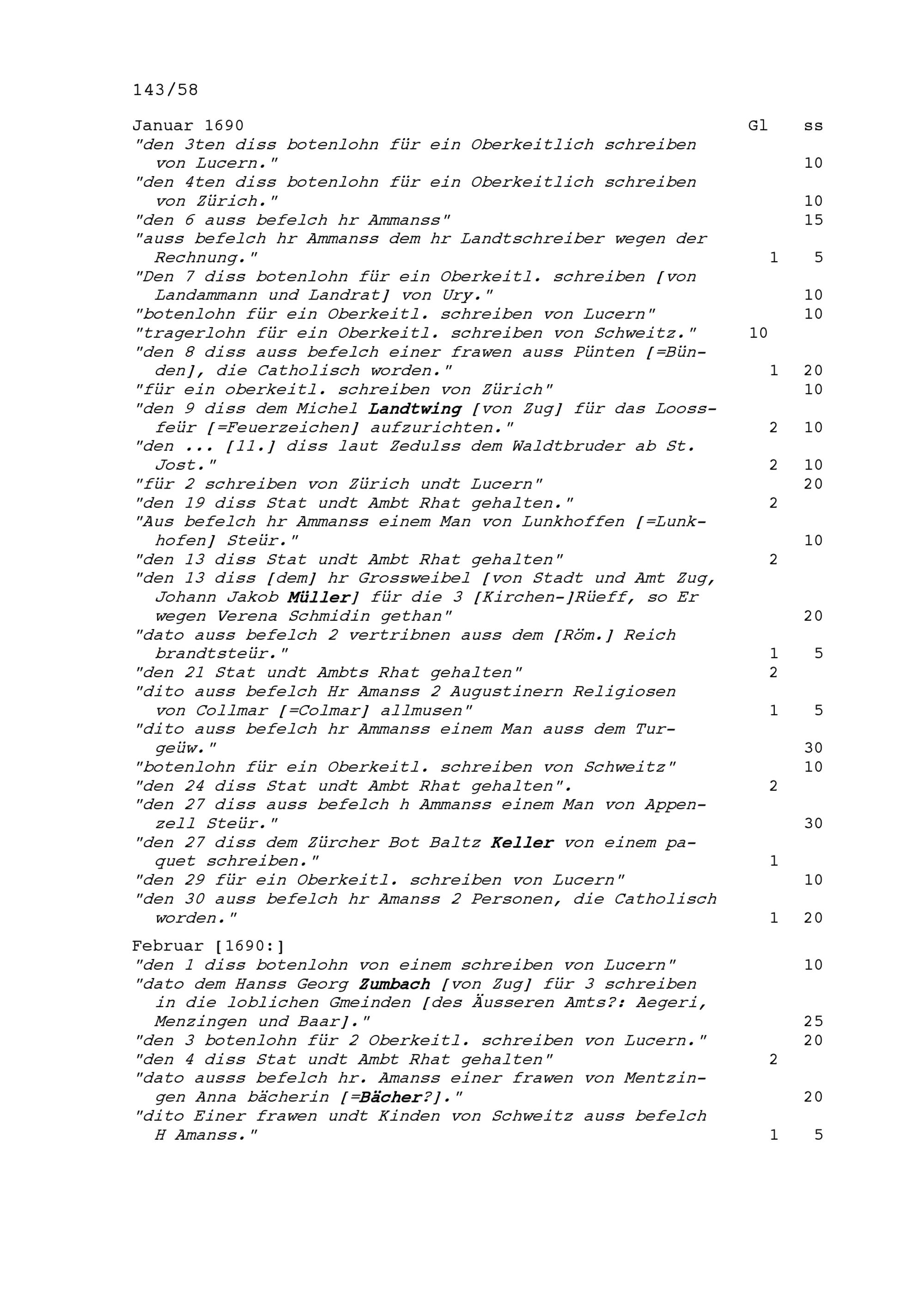 Rechnung der Einnahmen und Ausgaben von Johann Landtwing, Seckelmeister der Stadt Zug, im Namen des Ammanns und Rats von Stadt und Amt Zug, angefangen 19. Oktober 1689