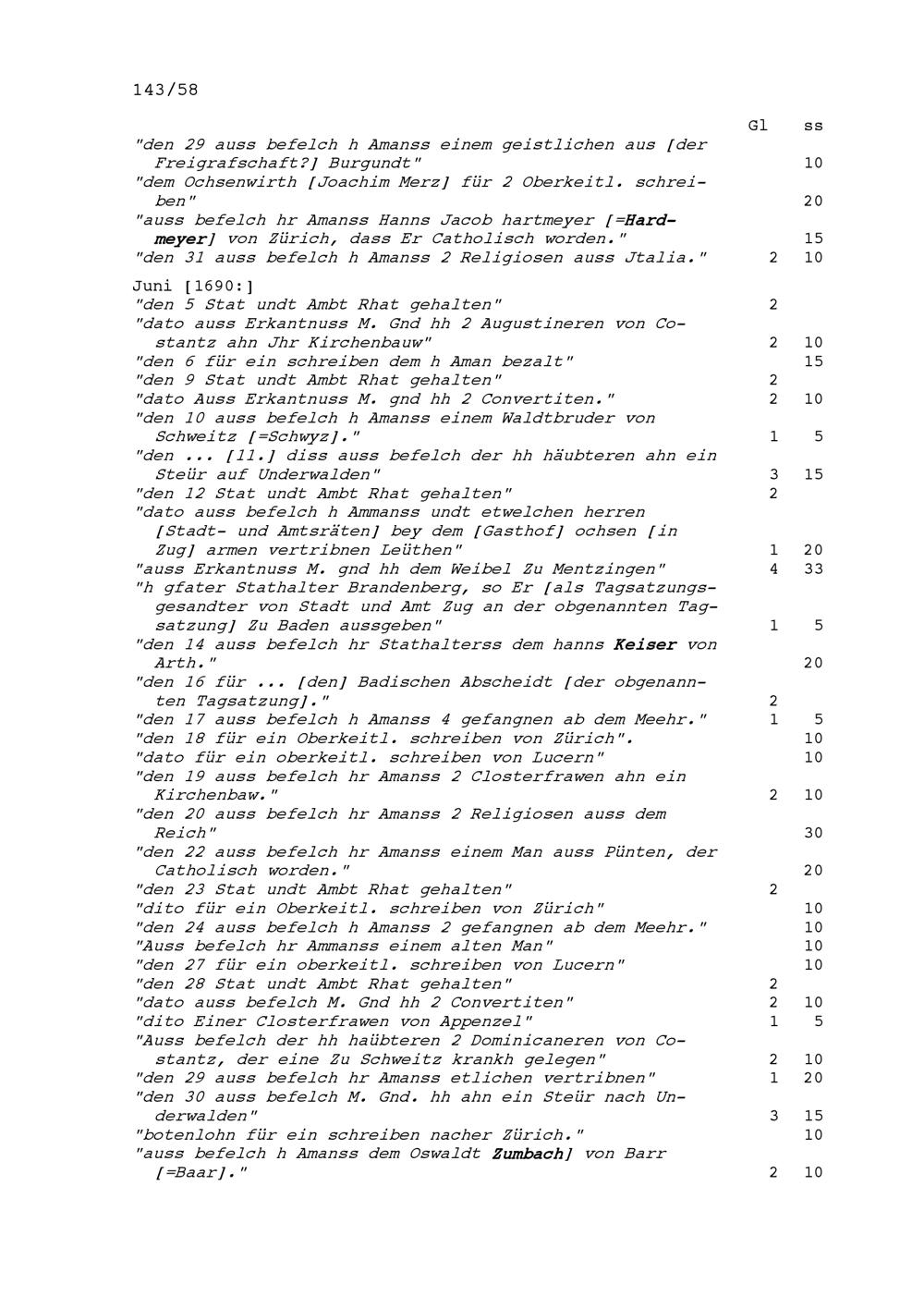 Rechnung der Einnahmen und Ausgaben von Johann Landtwing, Seckelmeister der Stadt Zug, im Namen des Ammanns und Rats von Stadt und Amt Zug, angefangen 19. Oktober 1689