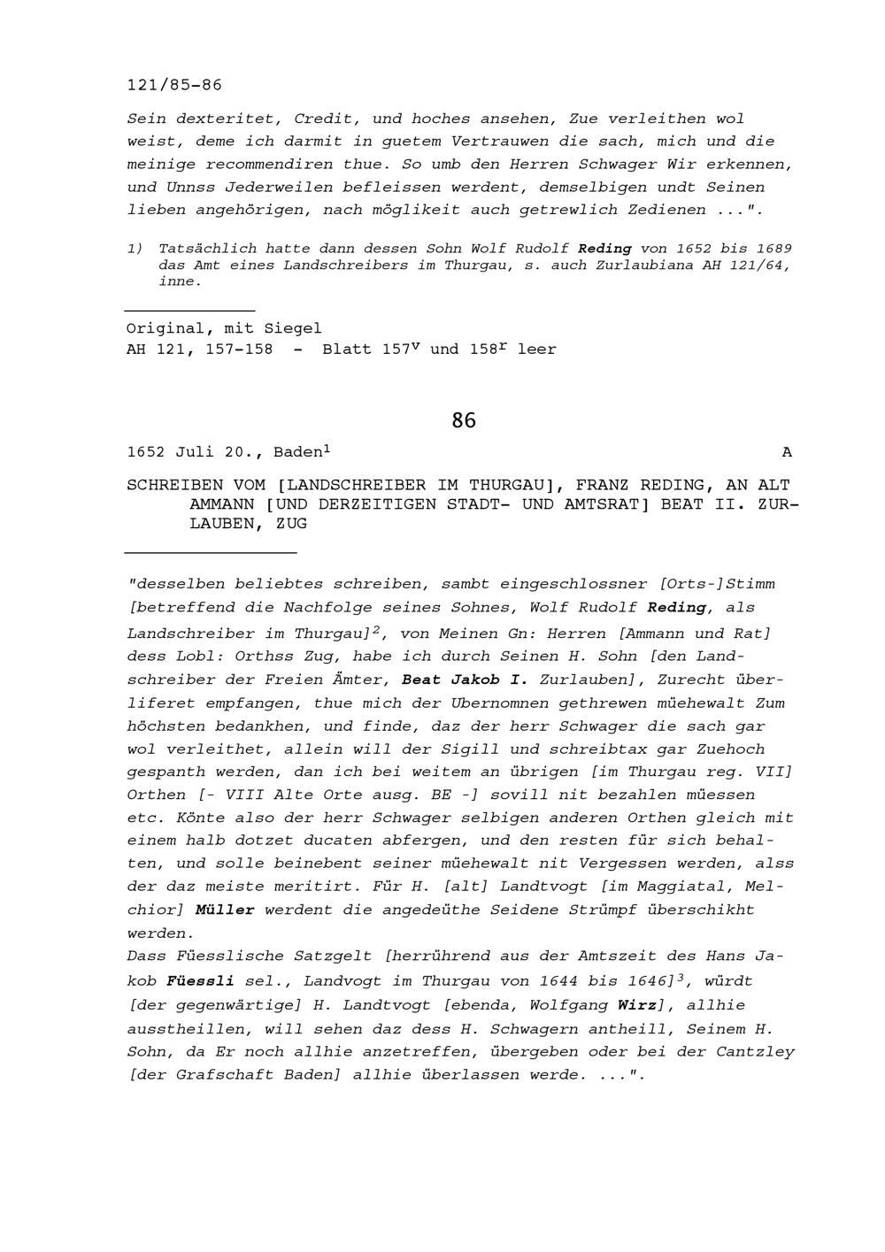 Schreiben von Franz Reding, Landschreiber im Thurgau, an Beat II. Zurlauben, Hauptmann und Stadt- und Amtrat, Zug