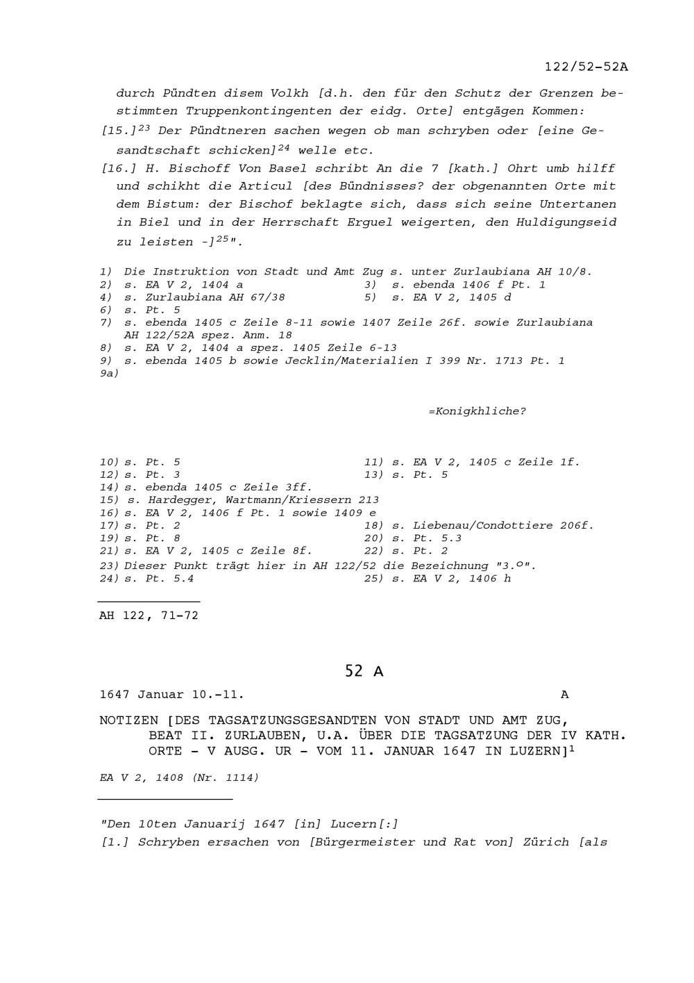 Notiz von Beat II. Zurlauben, Tagsatzungsgesandter, über die Tagsatzung der Sieben Katholischen Orte vom 4. bis 6. Januar 1647 in Luzern