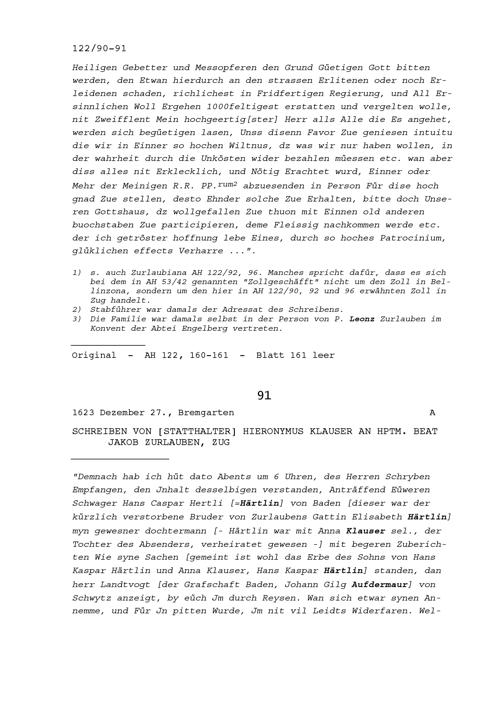 Schreiben von Joachim Albini, Abt, an Beat Jakob II. Zurlauben, Stadt- und Amtrat...