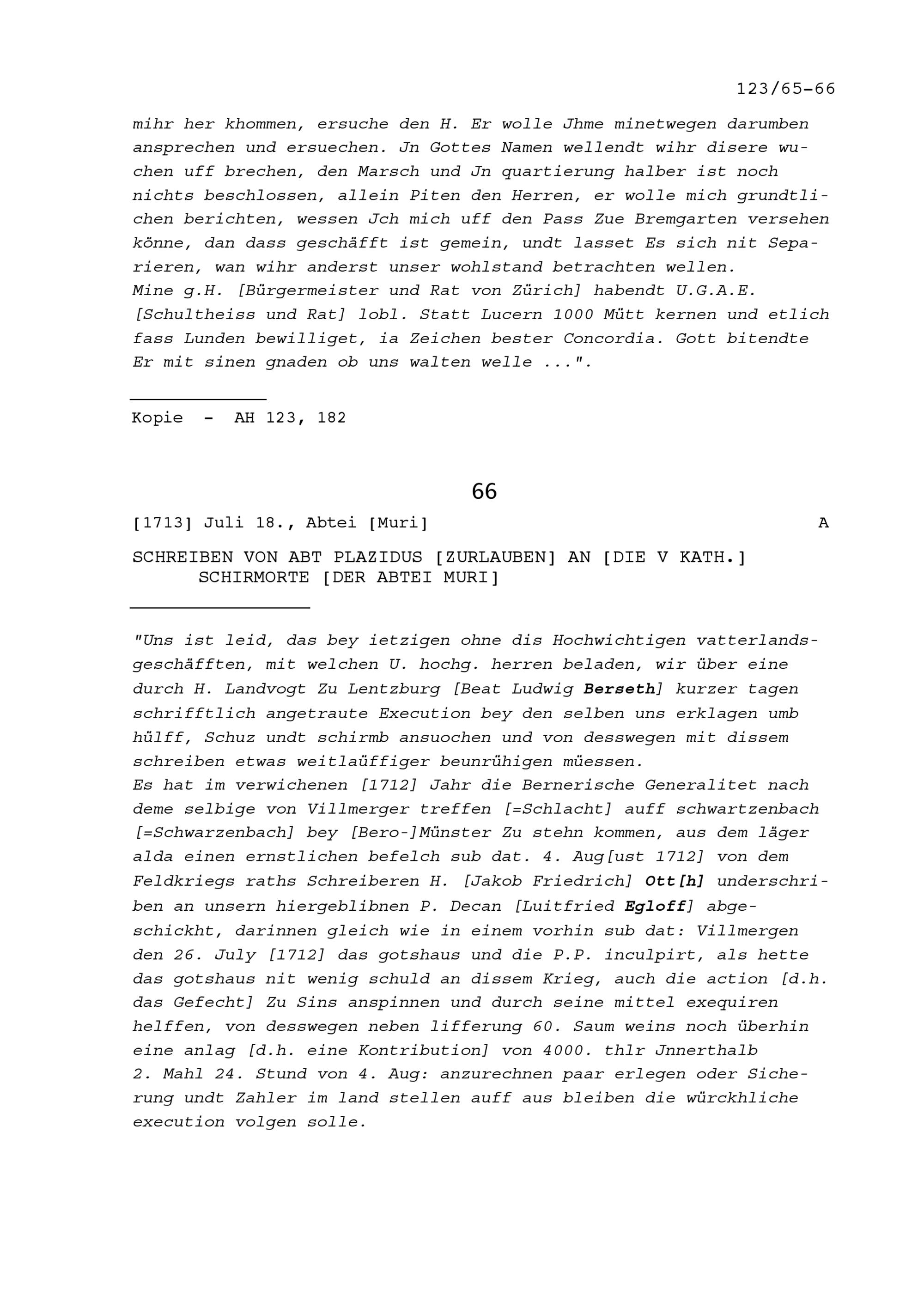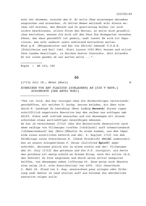 Schreiben von Hans Konrad Werdmüller, General, an Beat Jakob I. Zurlauben, Landschreiber der Freien Ämter