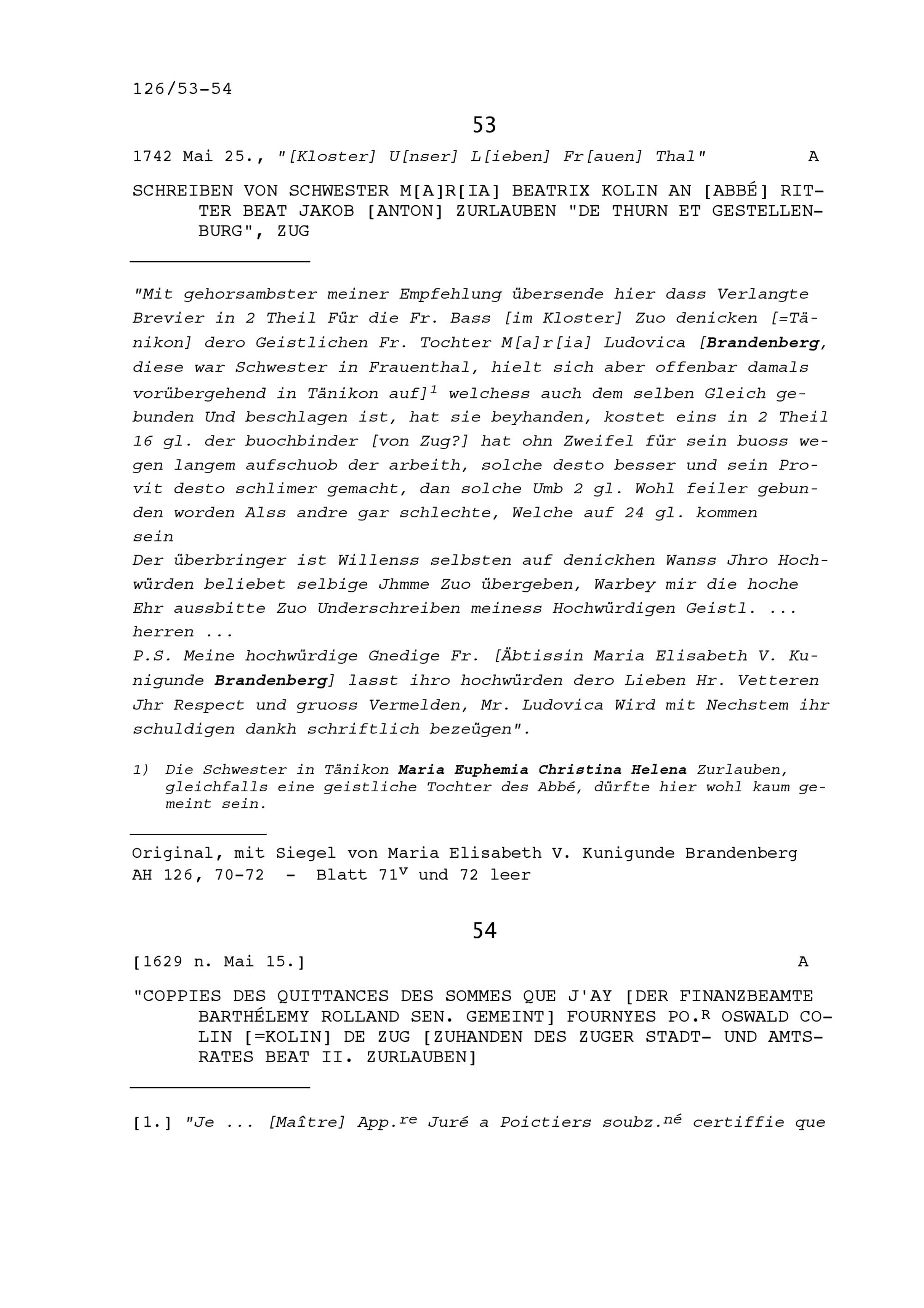 Rechnungskopien von Barthélémy Rolland, Senior, Finanzbeamter, für Oswald Kolin zuhanden von Beat II. Zurlauben, Stadt- und Amtrat Zug