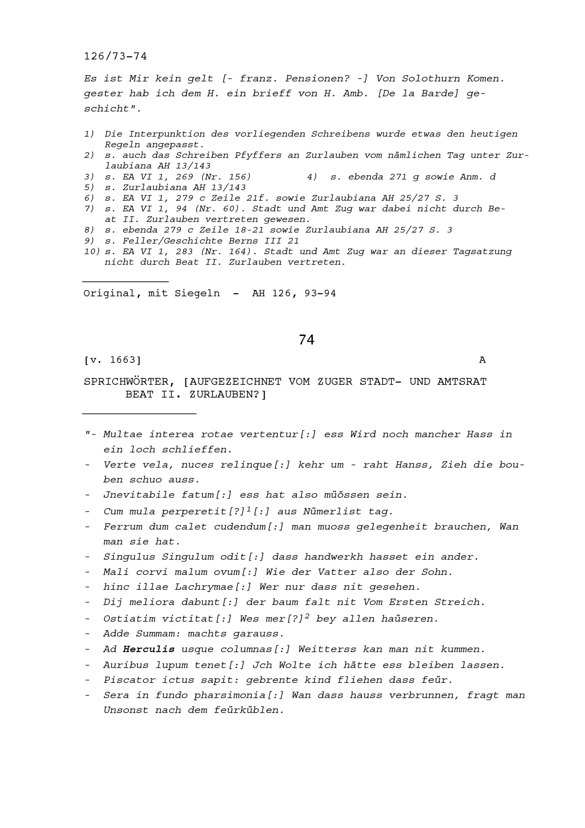Schreiben von Kaspar Pfyffer, Luzerner Ratsherr, an Beat II. Zurlauben, Altammann...