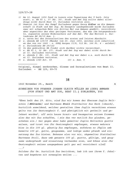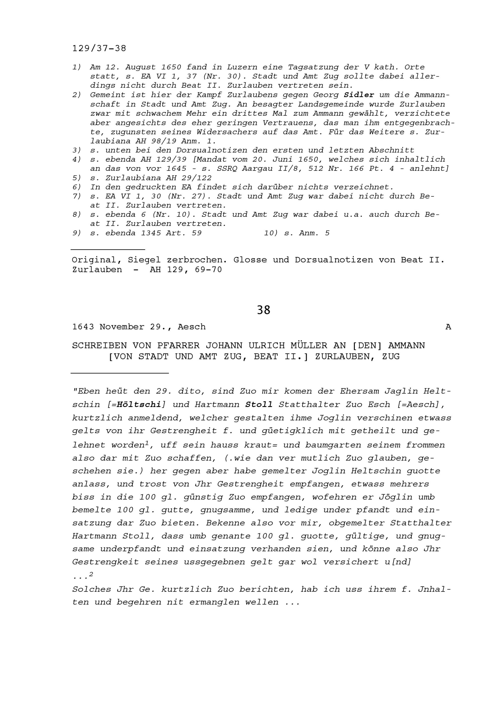 Schreiben von Beat Jakob I. Zurlauben, Landschreiber der Freien Ämter, an Beat II....