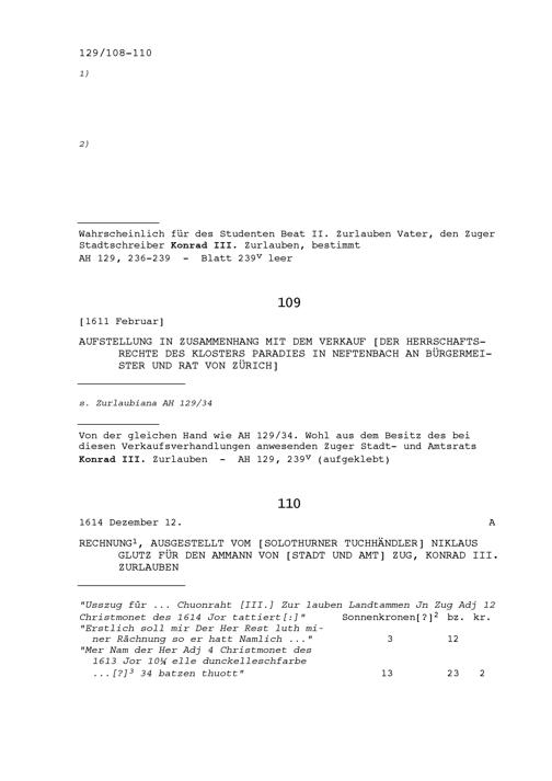 Rechnung für Konrad III. Zurlauben, Ammann von Stadt und Amt Zug, ausgestellt von...