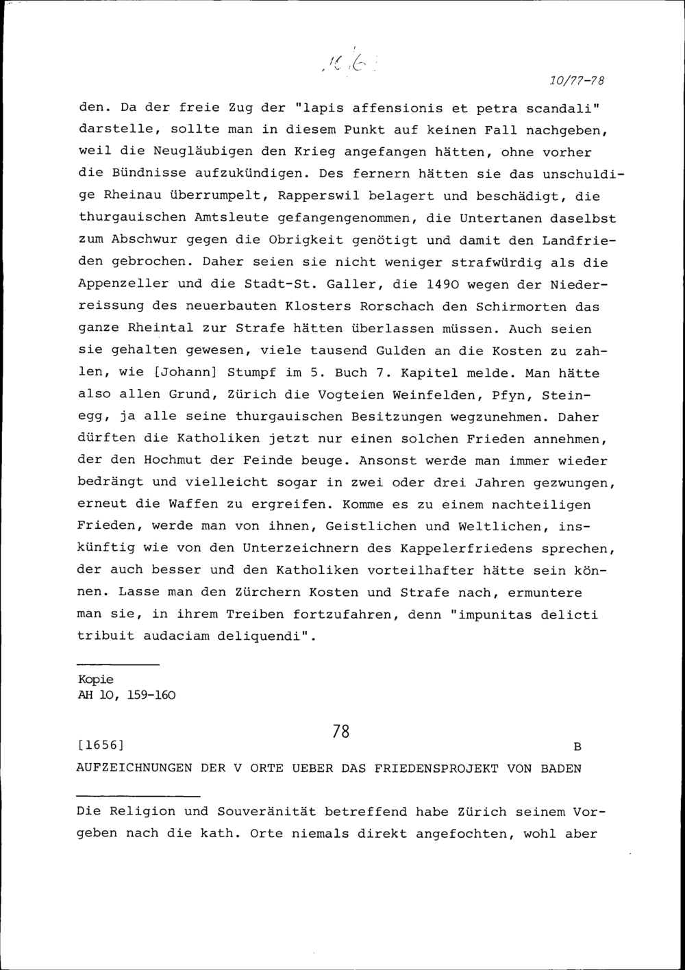 Aufzeichnungen der Fünf Orte über das Friedensprojekt von Baden